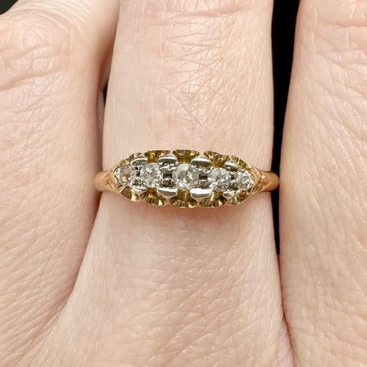 18Ct Yellow Gold Victorian Revival Scalloped .15 Carat TW Diamond Band Ring Sz O 1/2