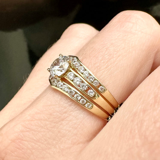 9Ct Yellow Gold 1.5 Carat TW Diamond Simulant Bridal Ring Set Sz O 1/2