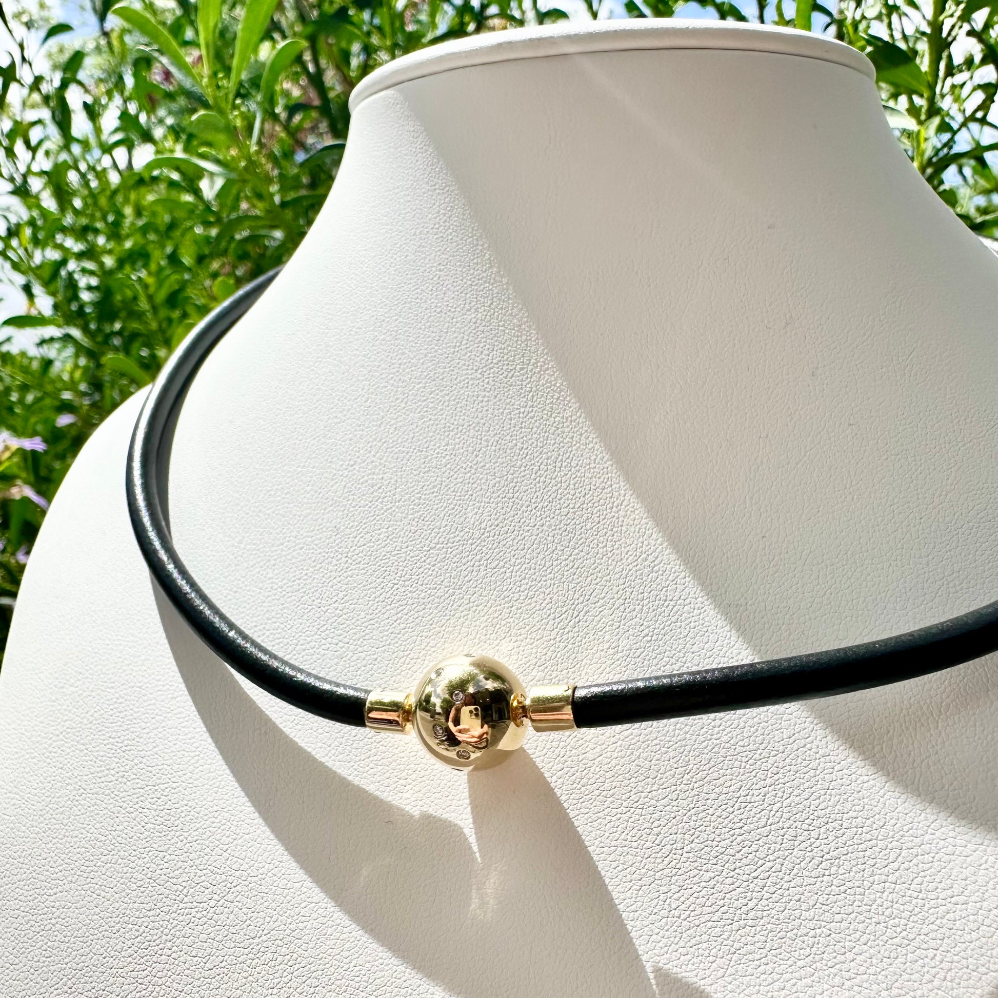 18Ct Yellow Gold Jorg Heinz Inspired Diamond Set Neoprene Bayonet Necklace 47cm