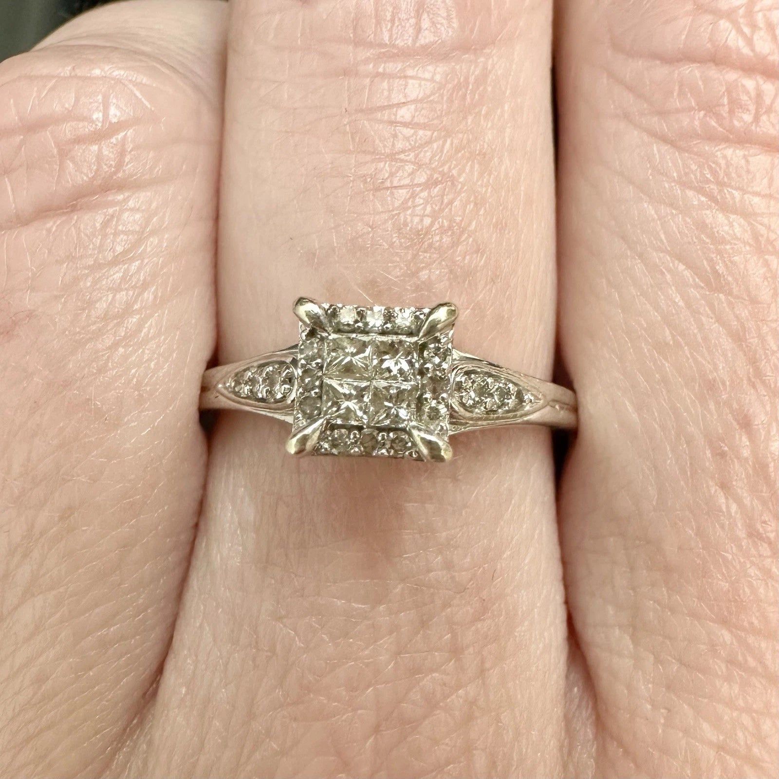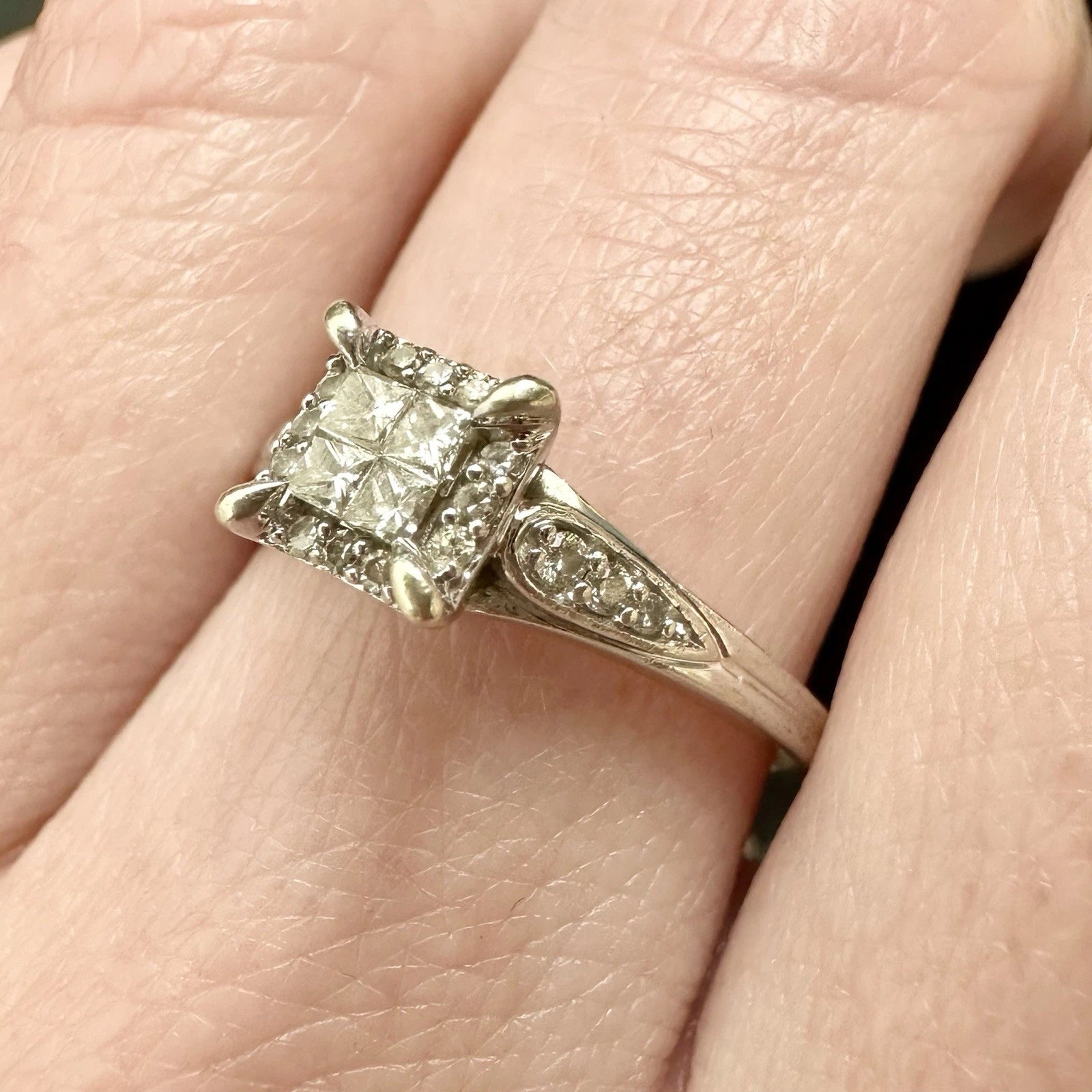 9Ct White Gold Halo Princess & Brilliant Cut 0.26 TW Diamond Ring Sz O 1/2