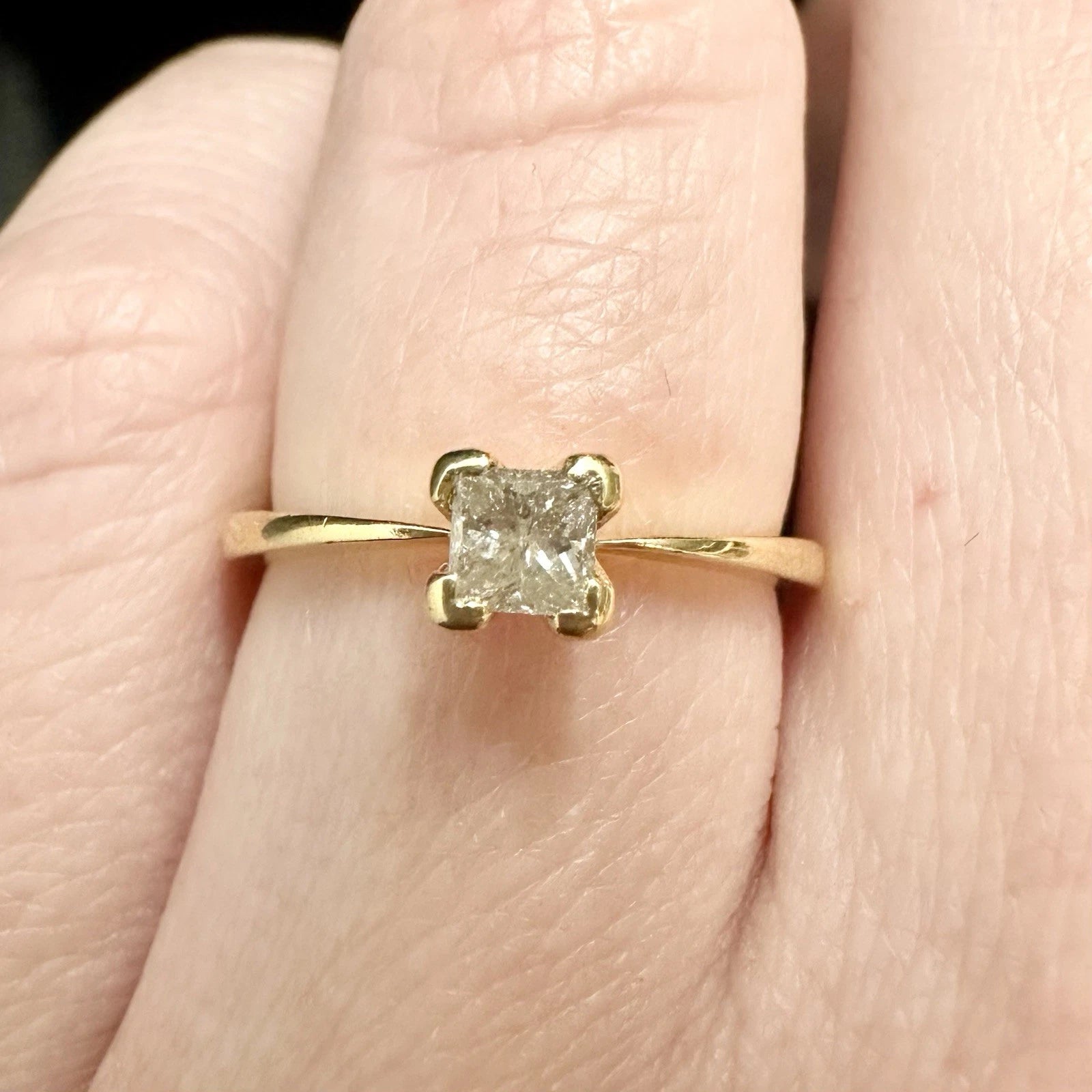 18Ct Yellow Gold Princess Cut .25Ct TW Diamond Solitaire Ring Sz J 1/2