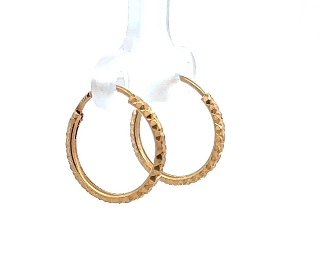 14Ct Yellow Gold Reflective Detailed Huggie Hoop Earrings