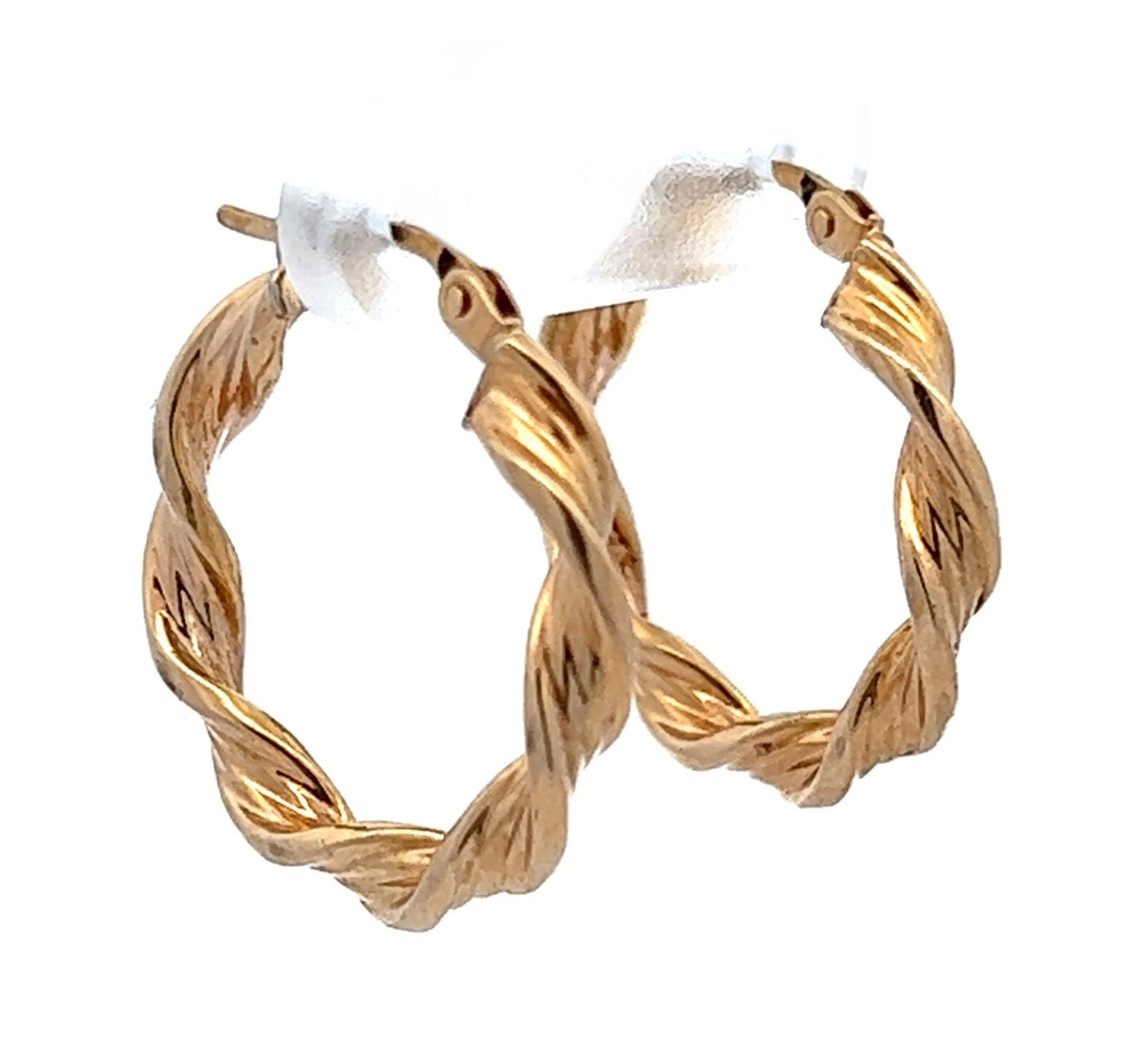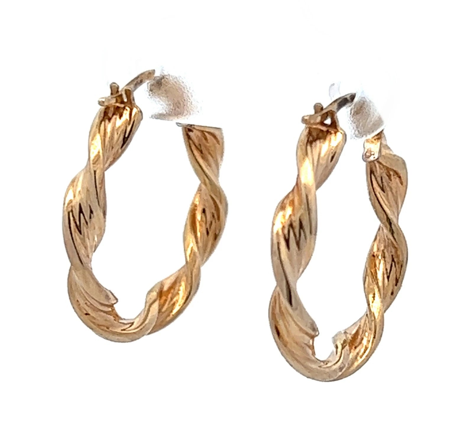 9Ct Yellow Gold 3.35 x 15.5mm Twisted Hoops