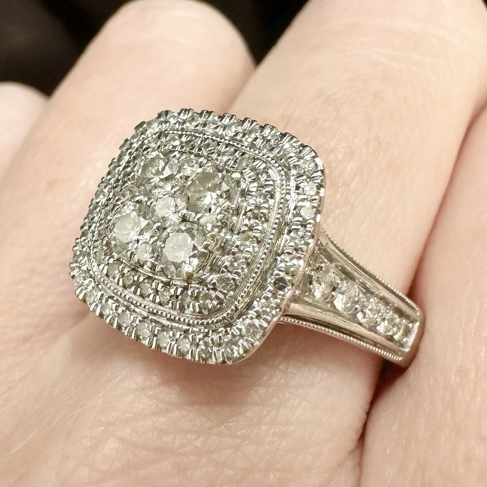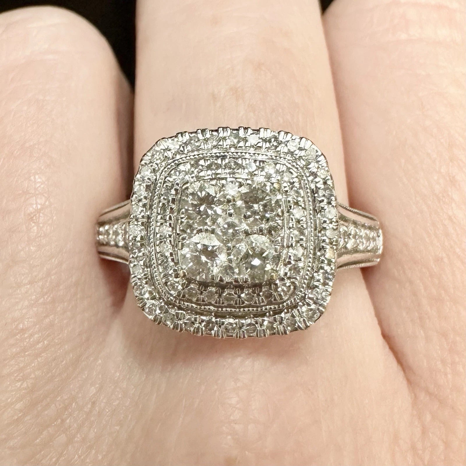 10Ct White Gold Halo 1.00 Carat TW Diamond Ring Sz T