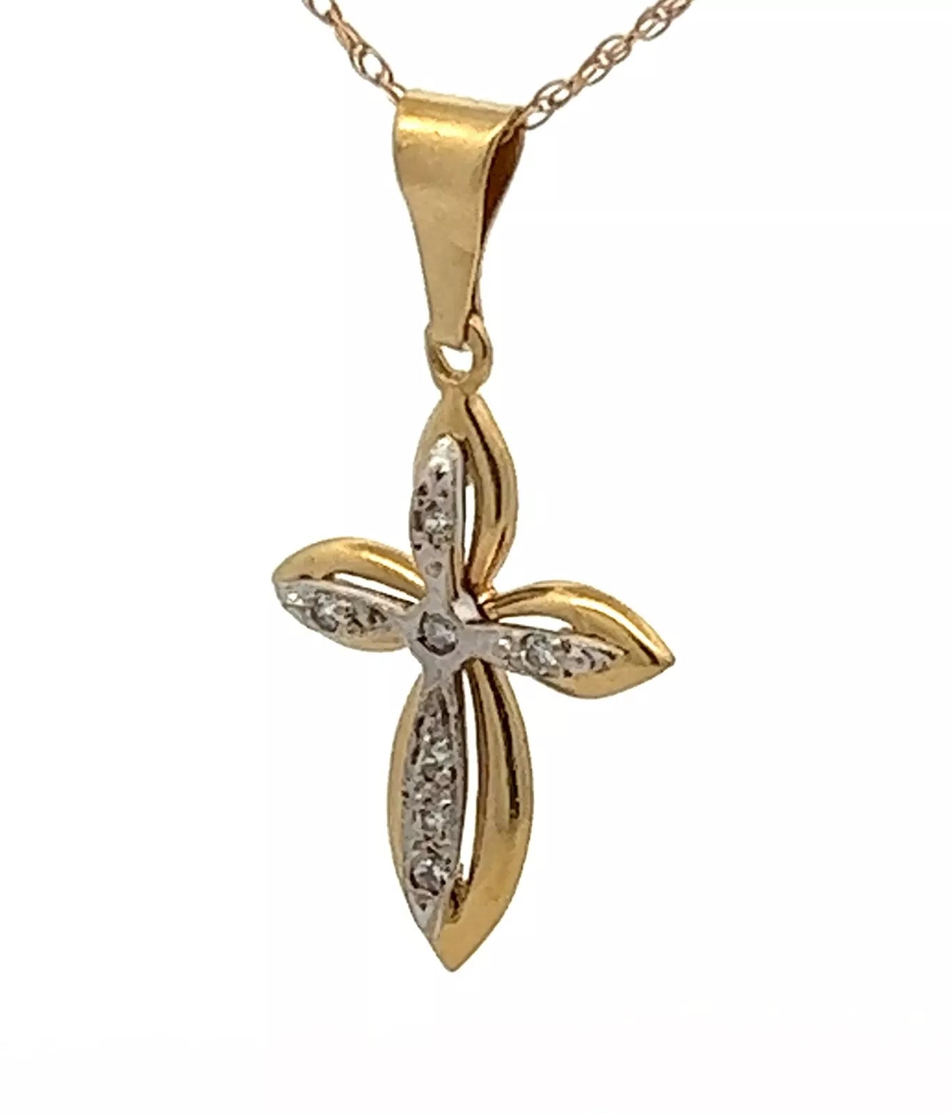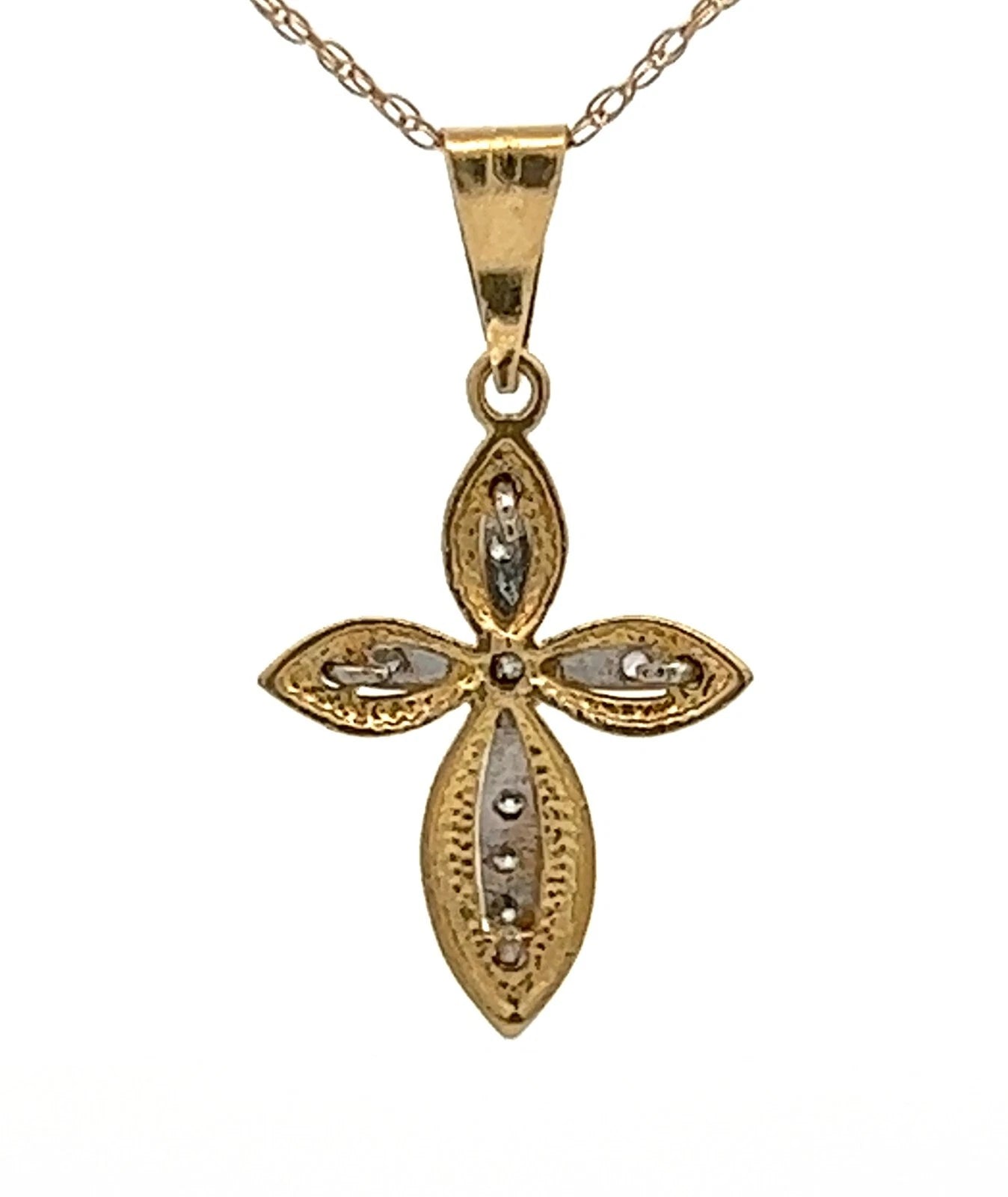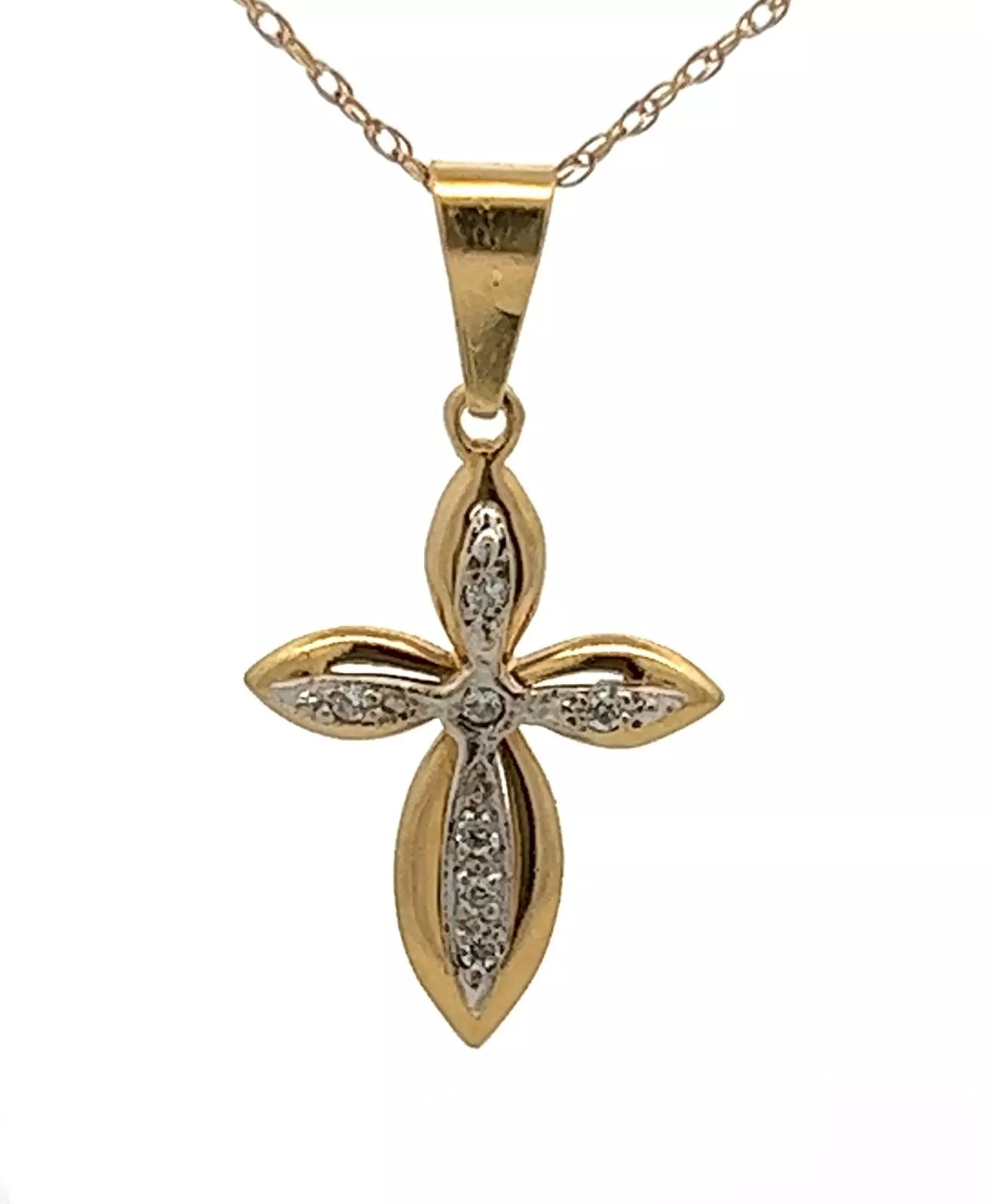 18Ct Two-Toned Gold CZ Cross Pendant Charm