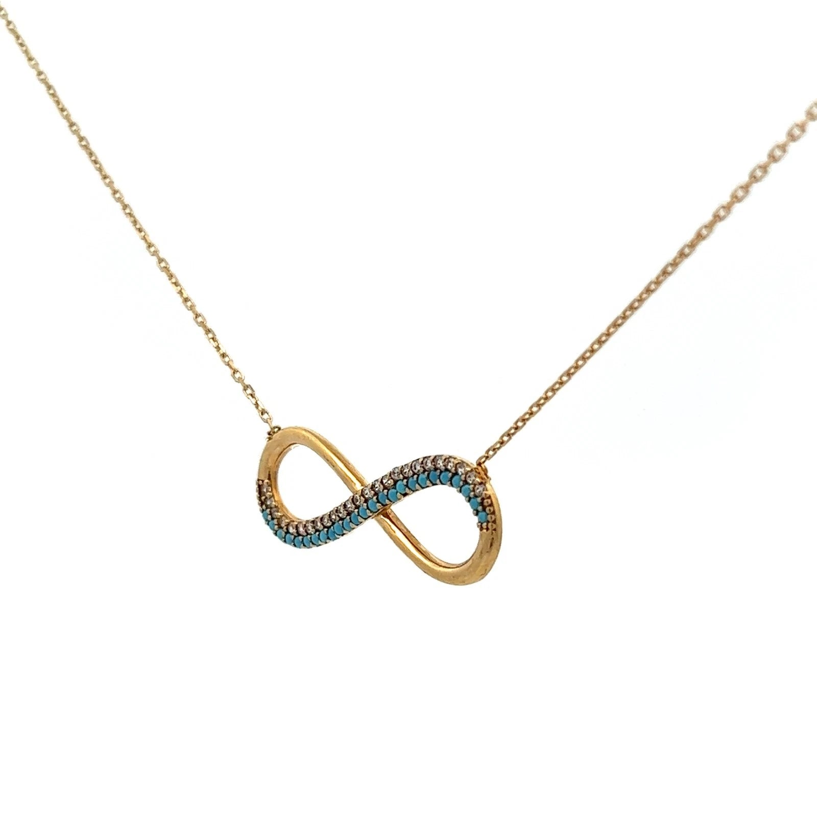 18Ct Yellow Gold Turquoise and CZ Infinity 45cm Chain Necklace