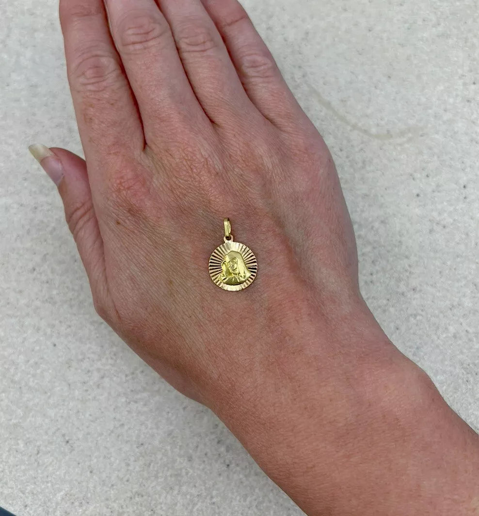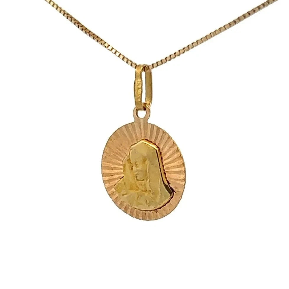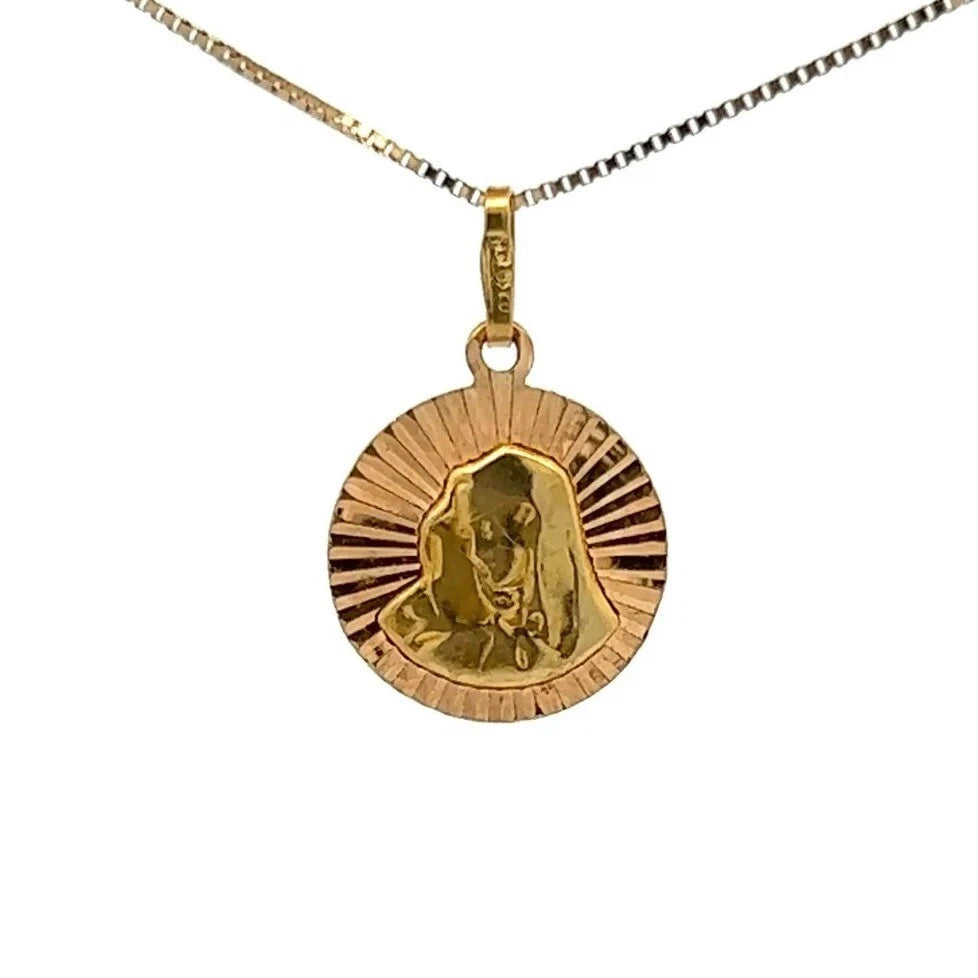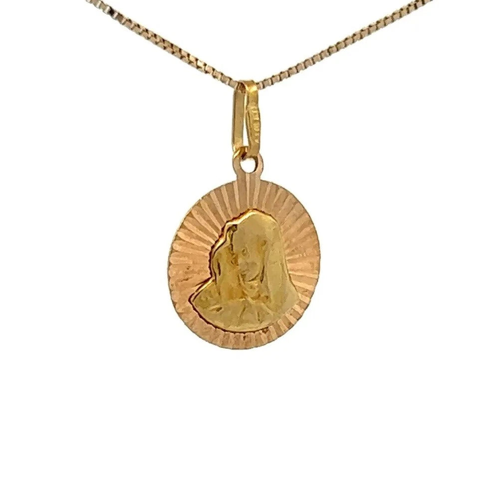 18Ct Yellow Gold Mother Mary With Aura Background Medallion Pendant