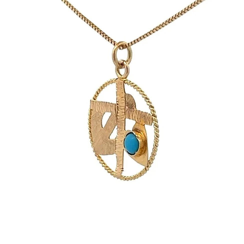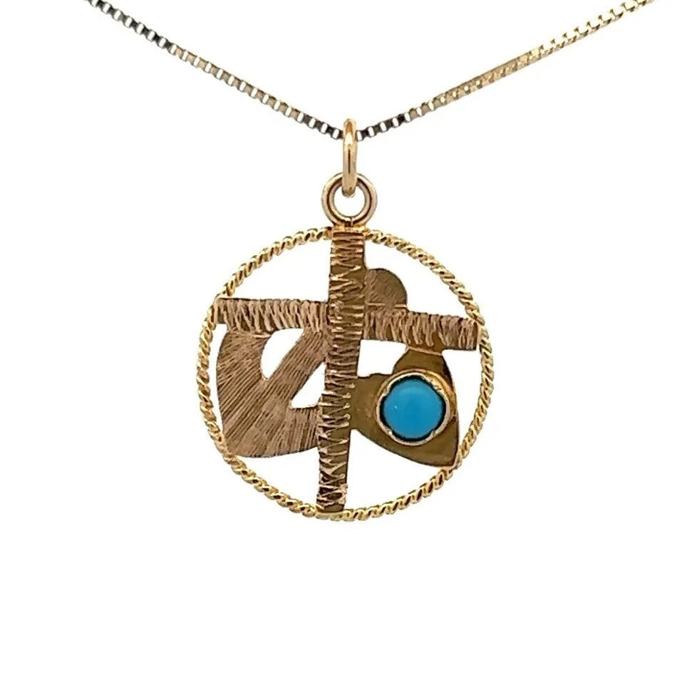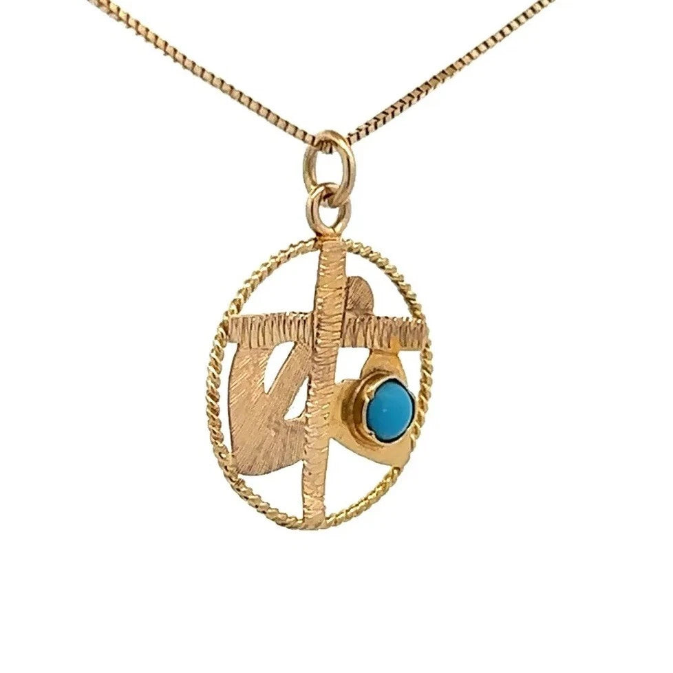 9Ct Yellow Gold Vintage Turquoise 'Faith, Hope & Charity' Pendant