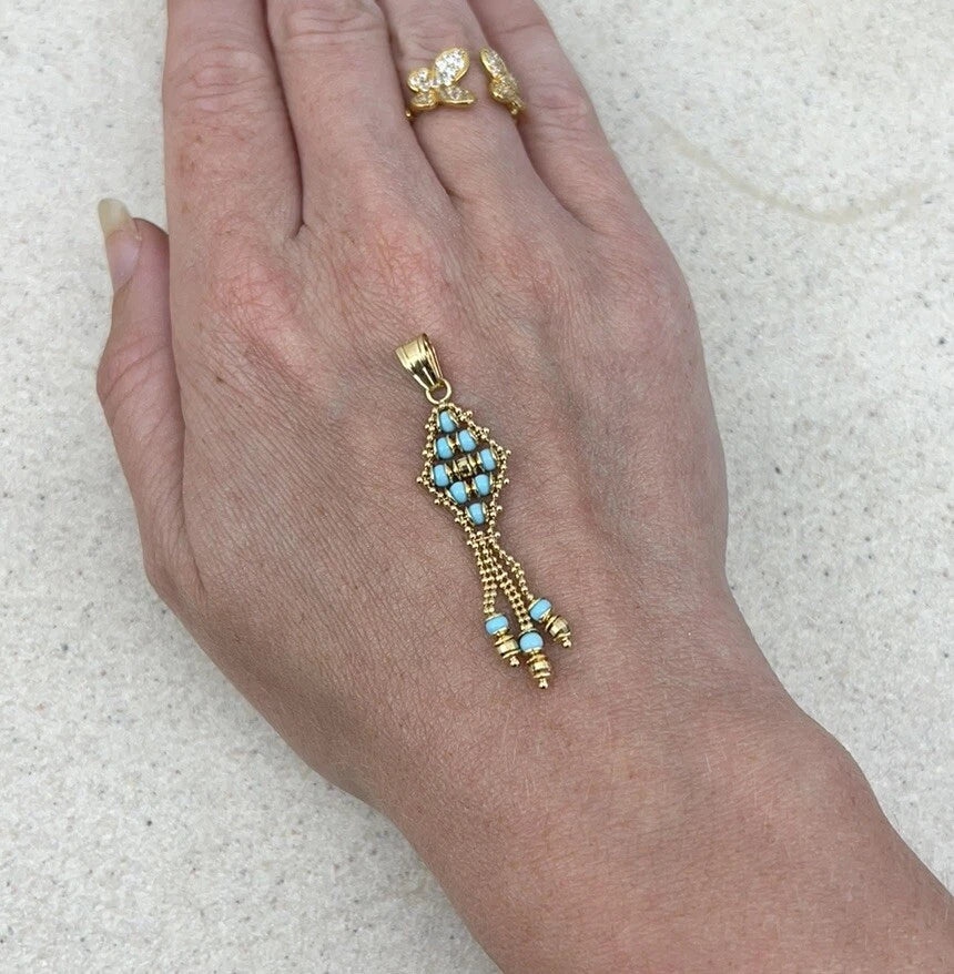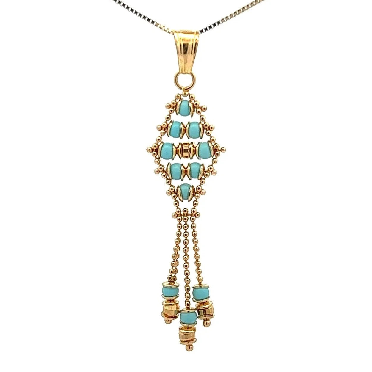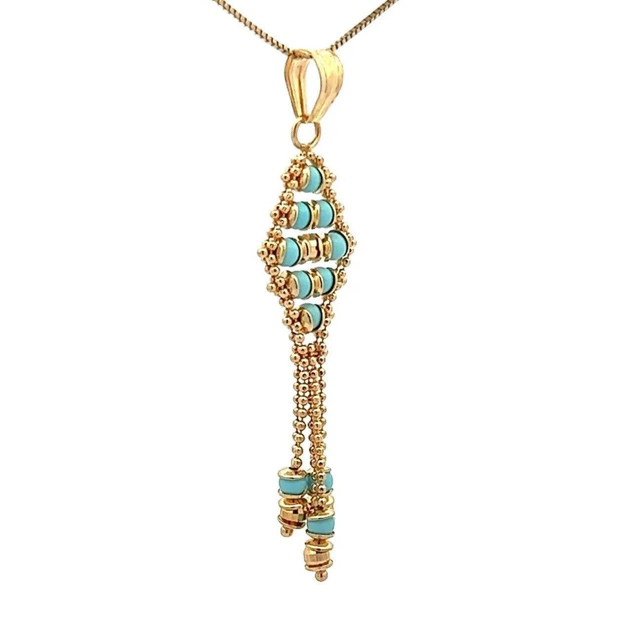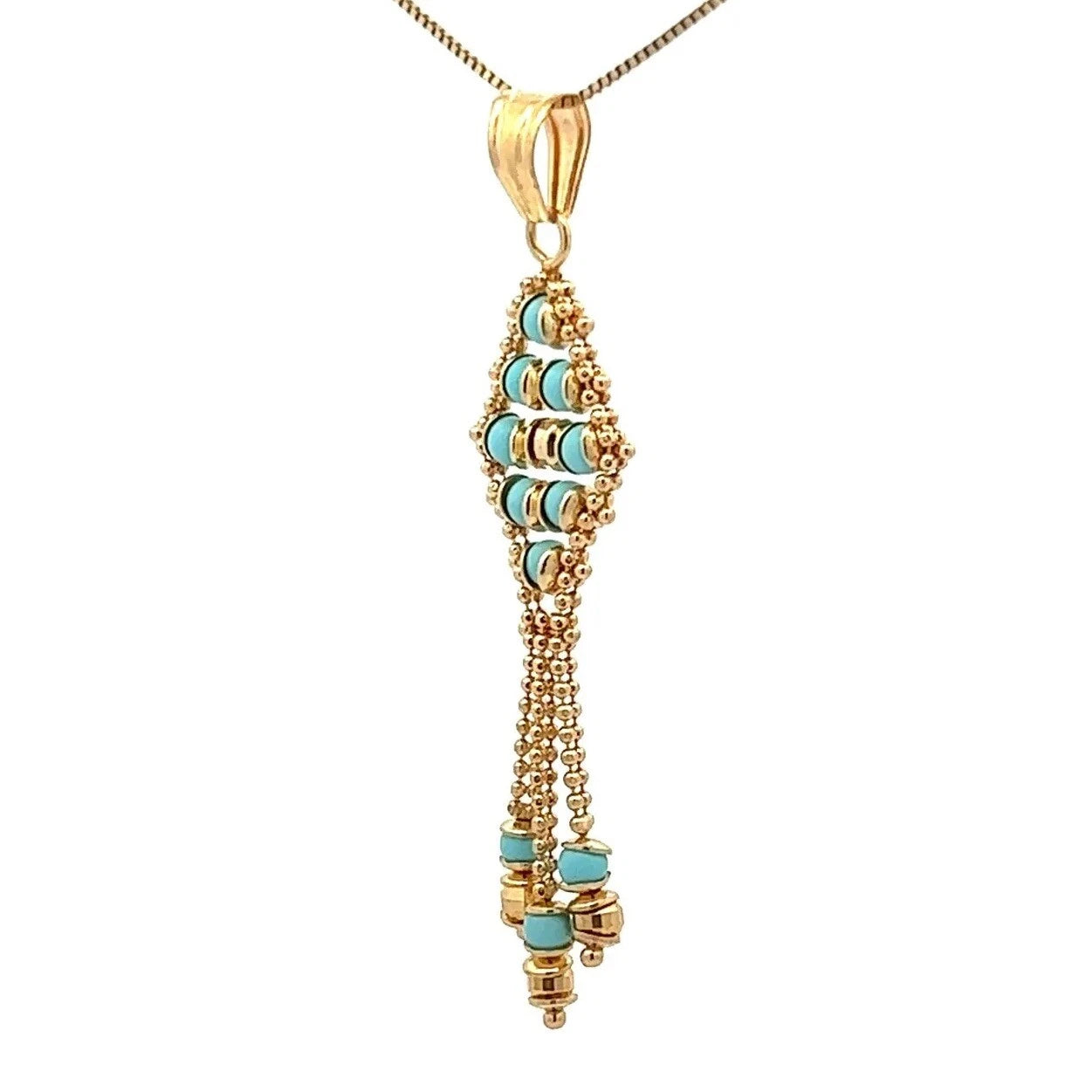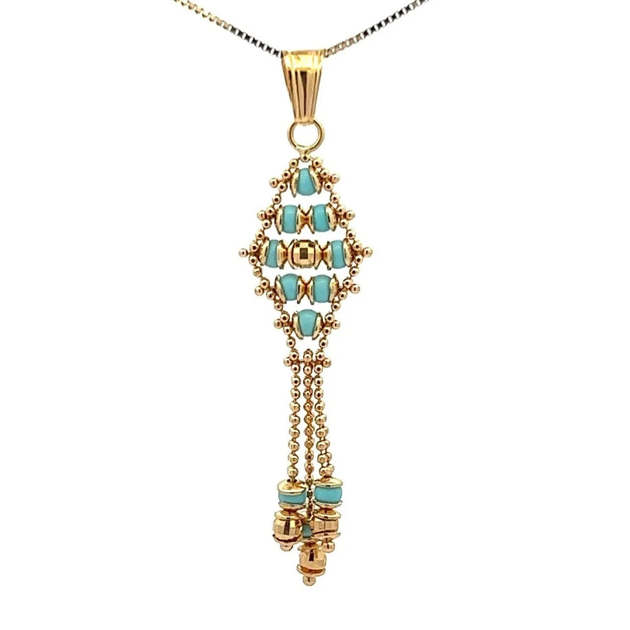 18Ct Yellow Gold Intricate Turquoise Flow Pendant