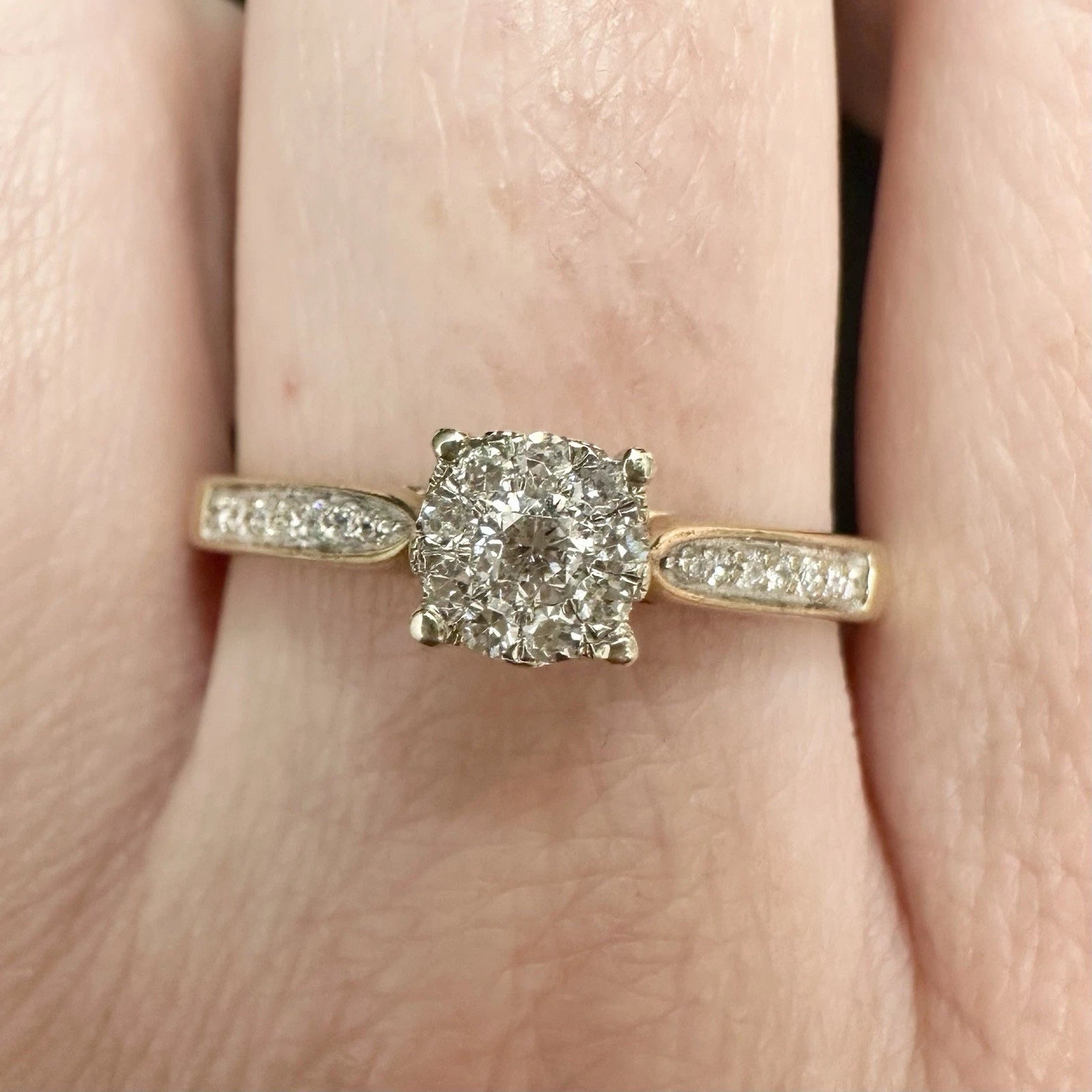 9Ct Yellow Gold 0.25 Carat TW Diamond Cluster Ring Sz S 1/2