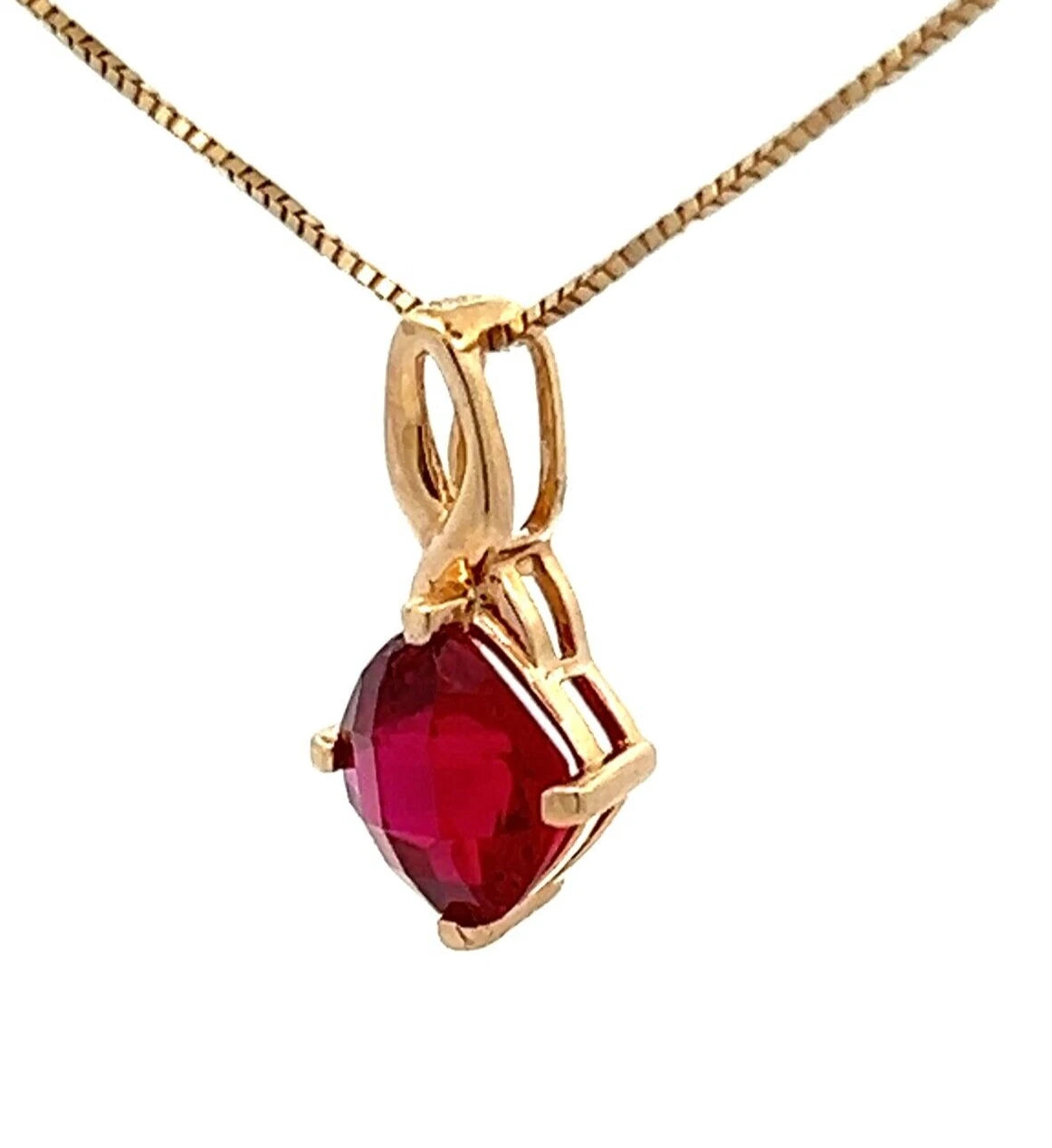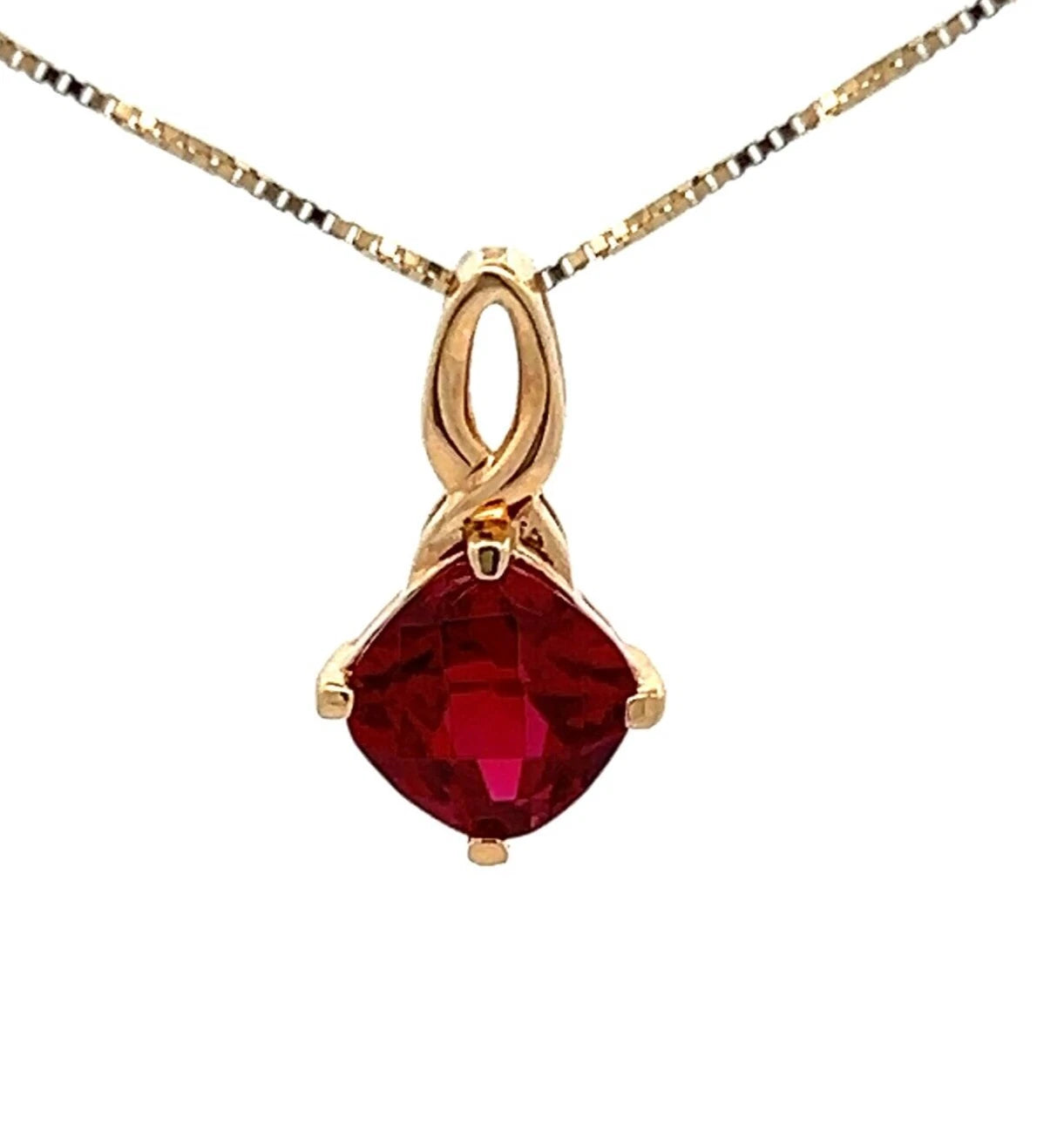 Main Stone: 1x Cushion Cut Multi-Faceted Created Ruby