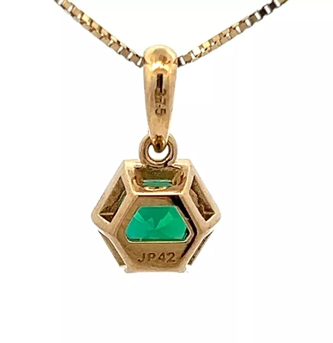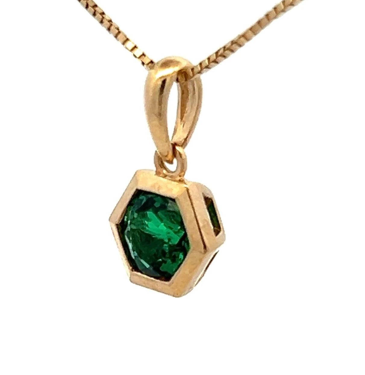 9Ct Yellow Gold Created Emerald Hexagon Bezel Charm Pendant
