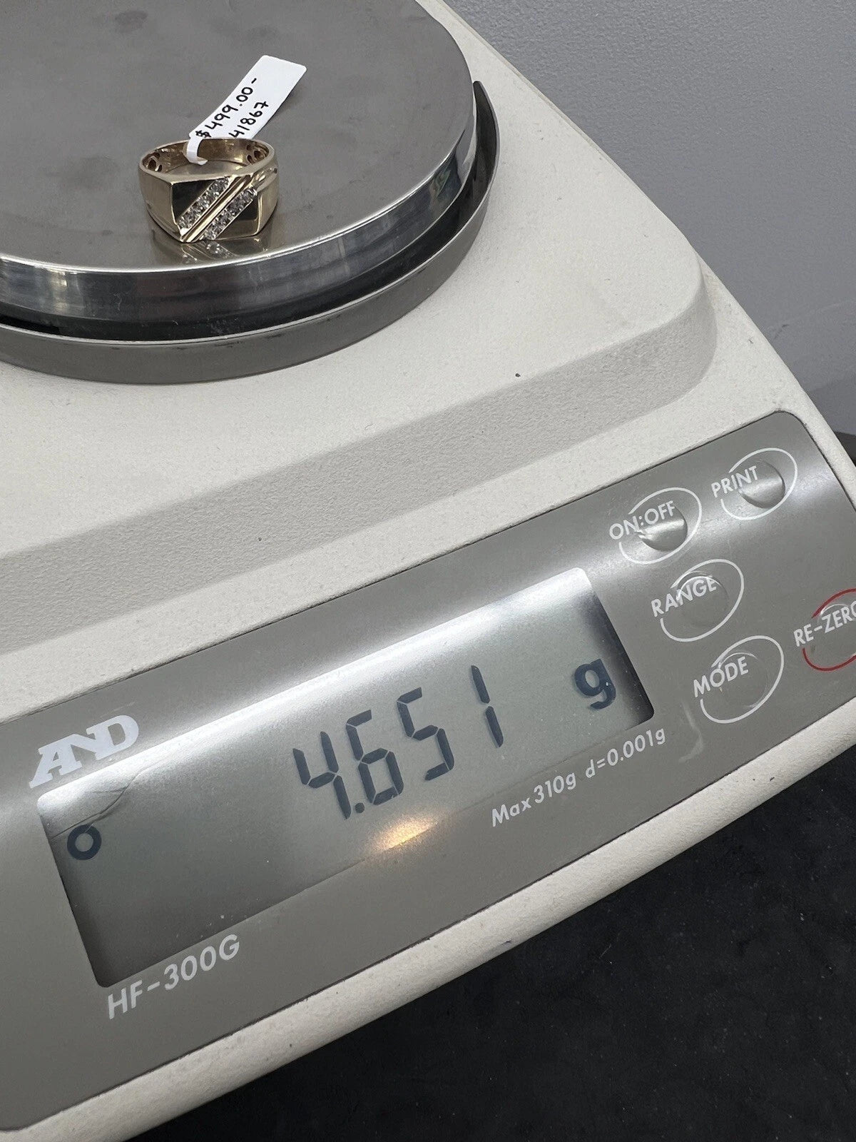 9Ct Yellow Gold .025 Carat TW Diamond Men's Signet Ring Sz V 1/2