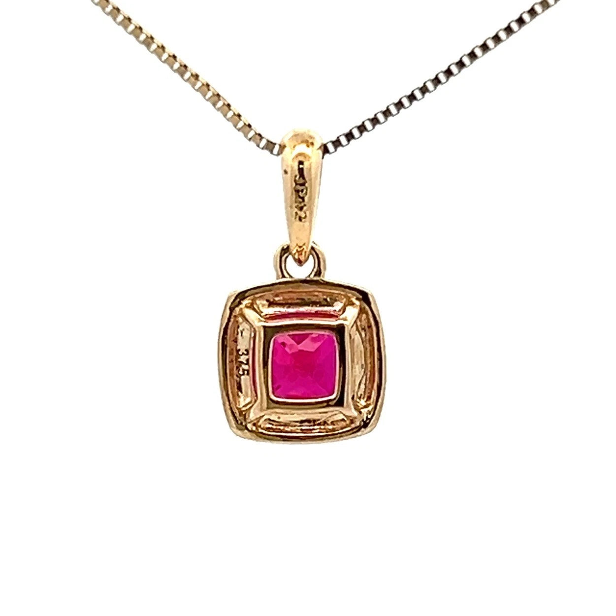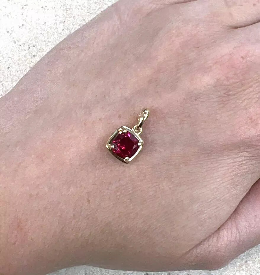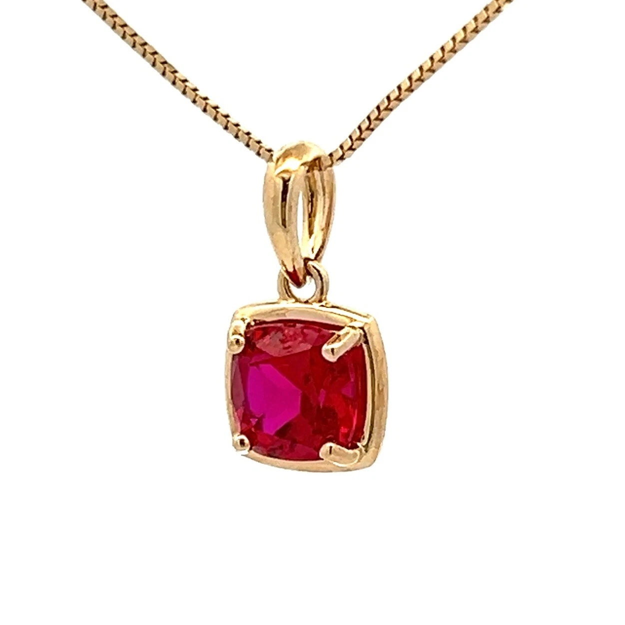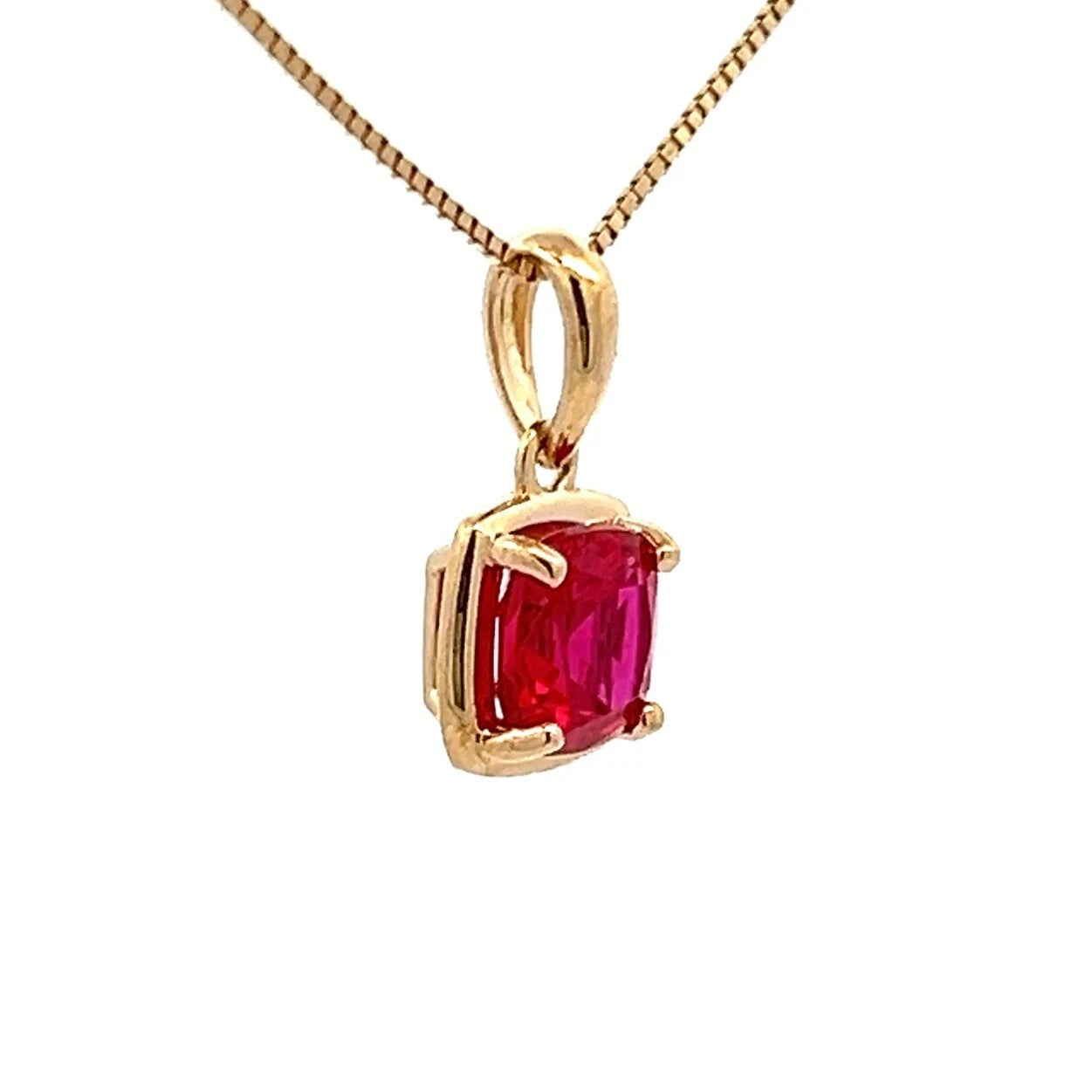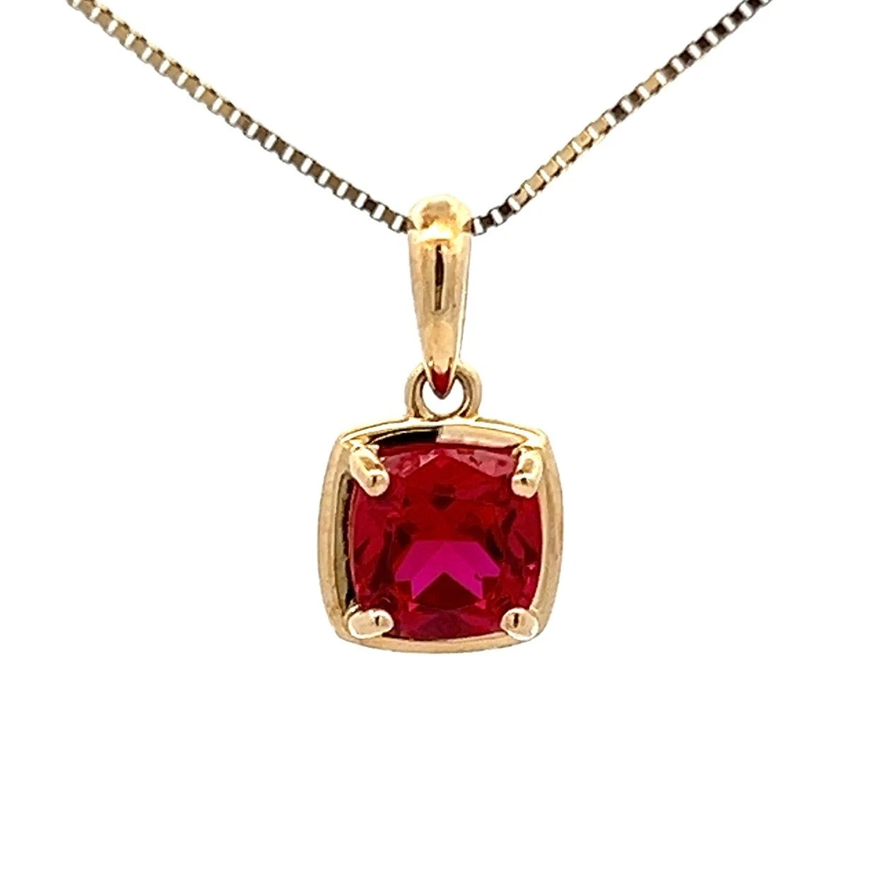 9Ct Yellow Gold Cushion Cut Created Ruby Charm Pendant