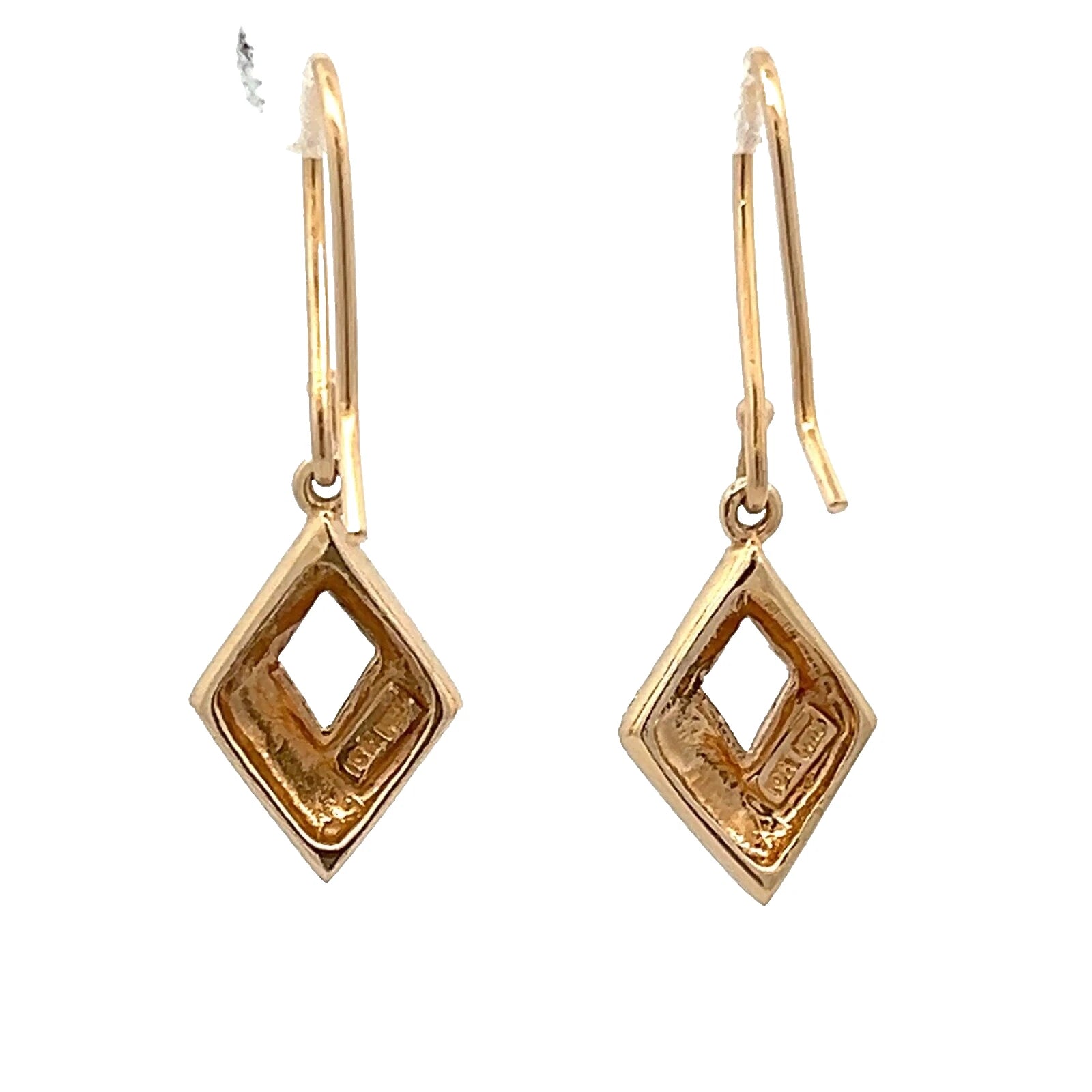10Ct Yellow Gold Dotted Detail Diamond Shaped Hook Earrings
