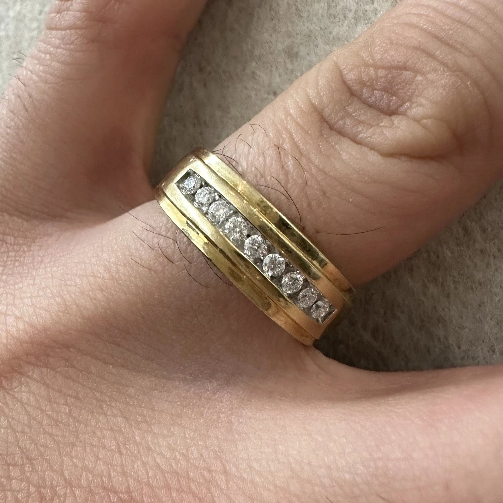 10Ct Yellow Gold 0.25 Carat TW Channel Set Diamond Men's Ring Sz T