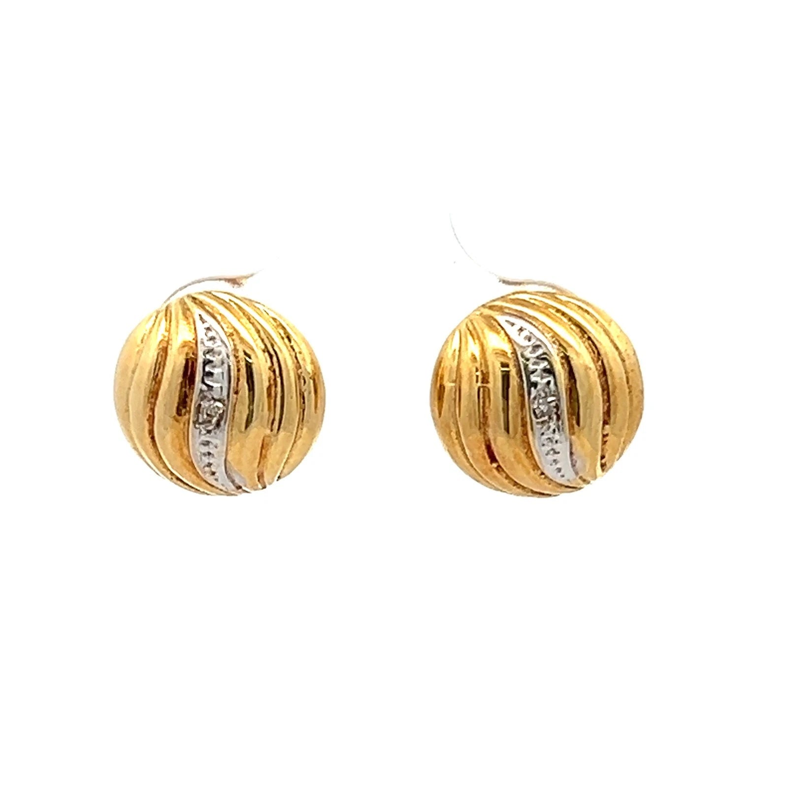 18Ct Two-Toned Gold Diamond Accent Dome Stud Earrings