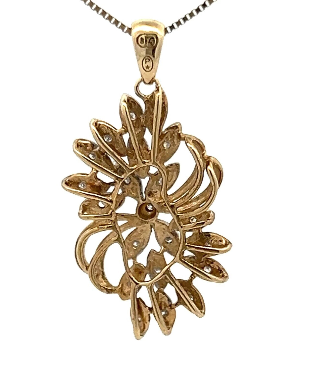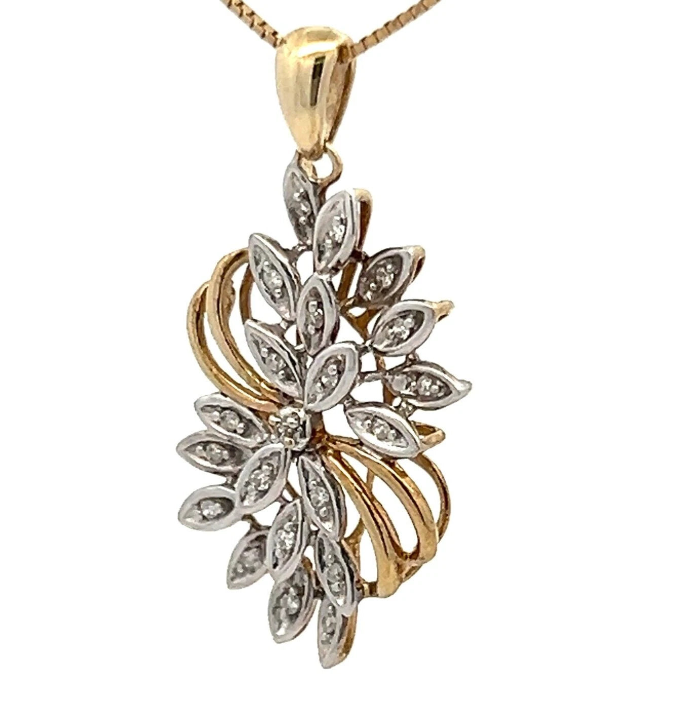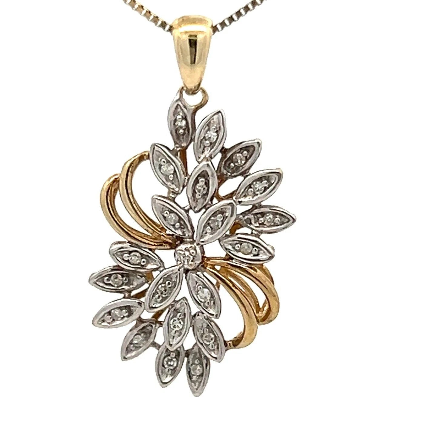 9Ct Two-Toned Gold 0.052 Carat TW Diamond Accent Floral Charm Pendant