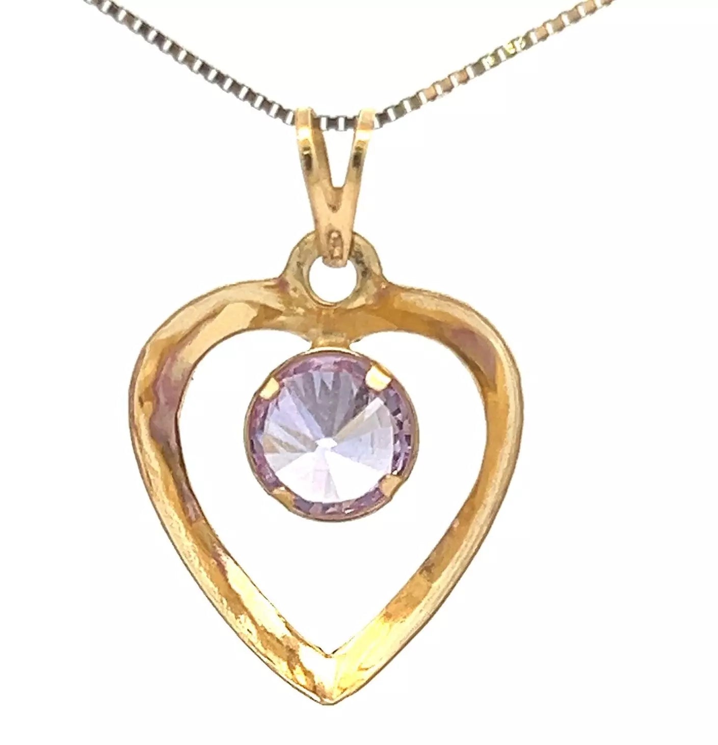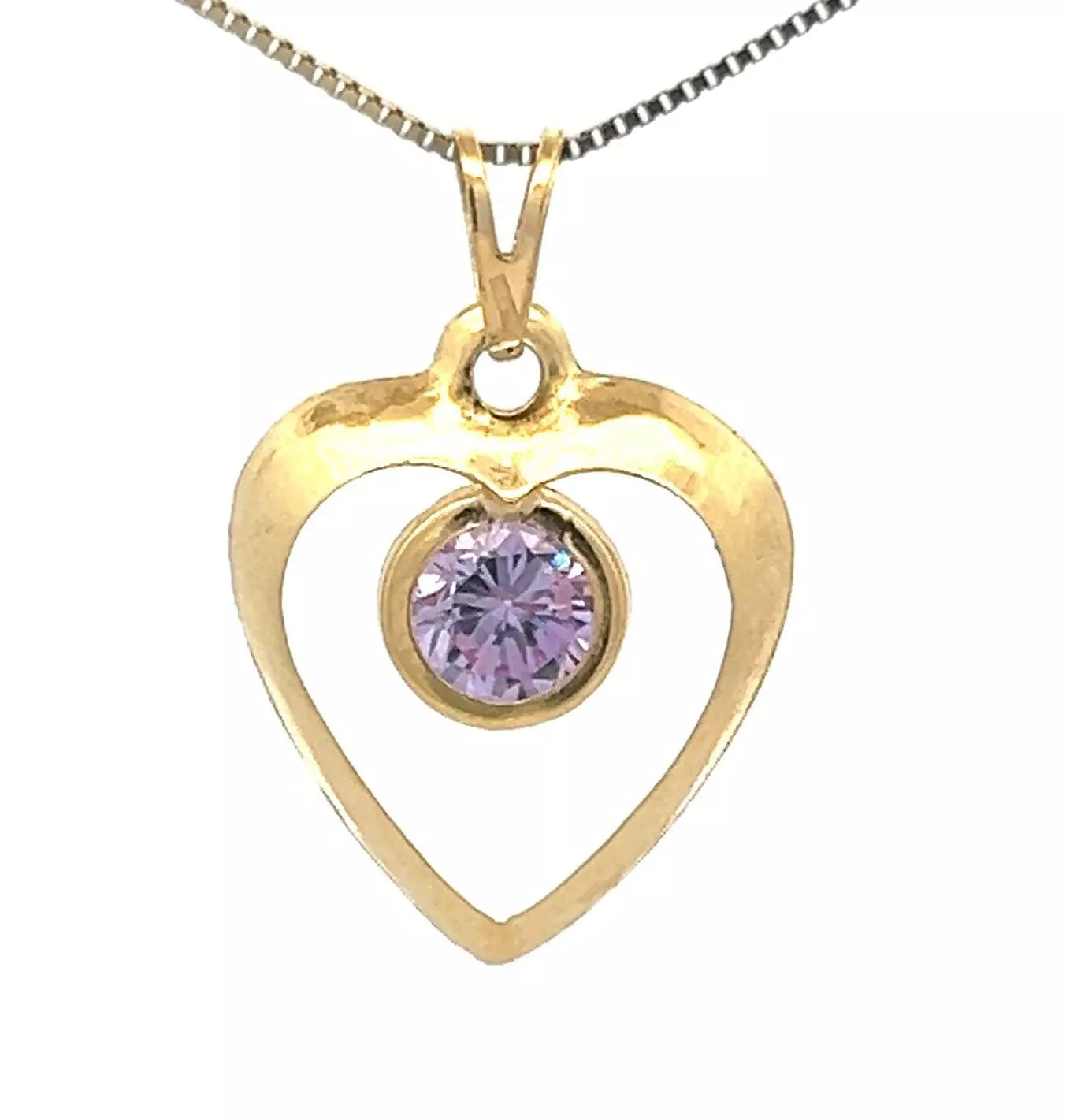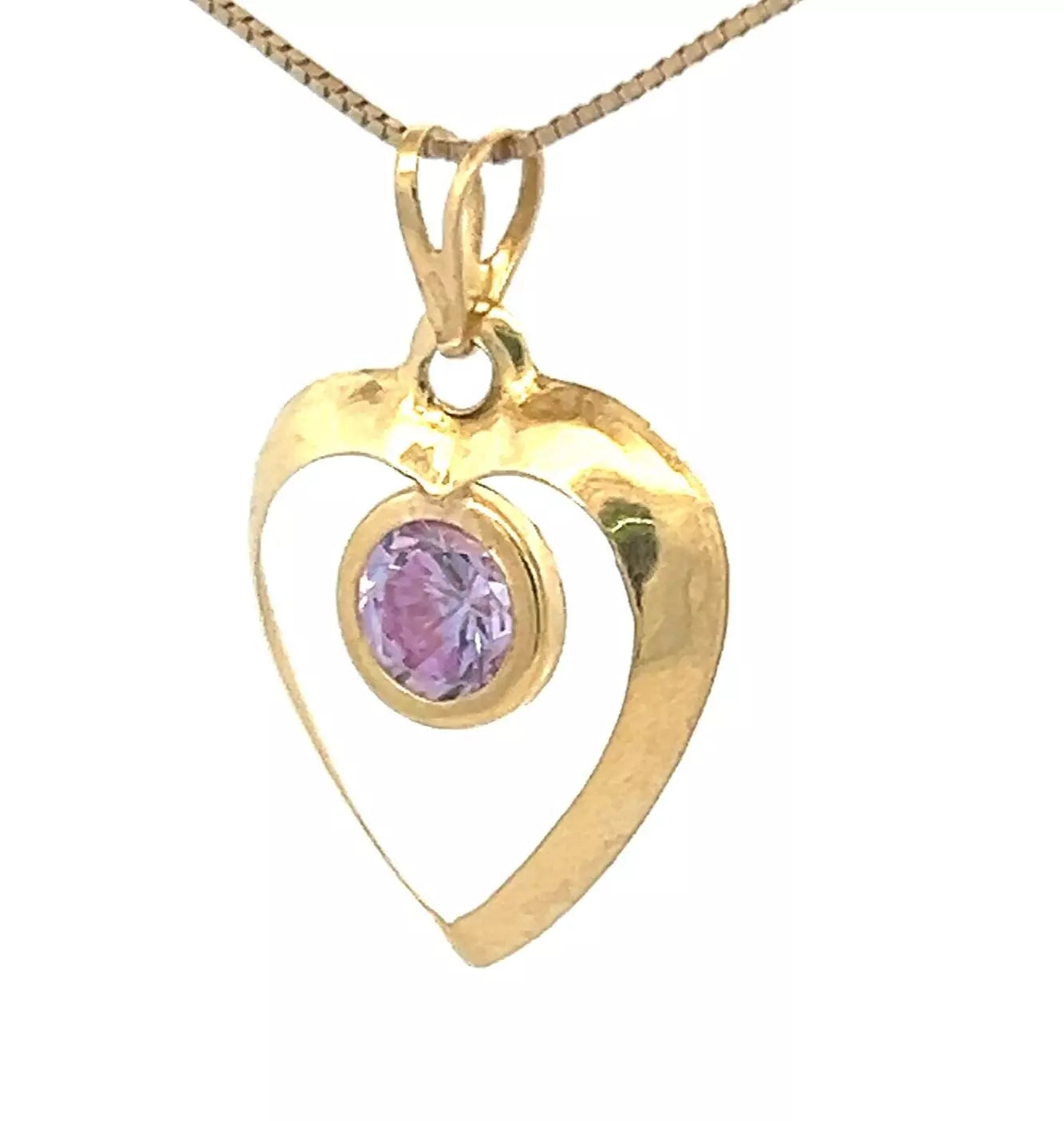 18Ct Yellow Gold Bezel Set Synthetic Amethyst Heart Pendant