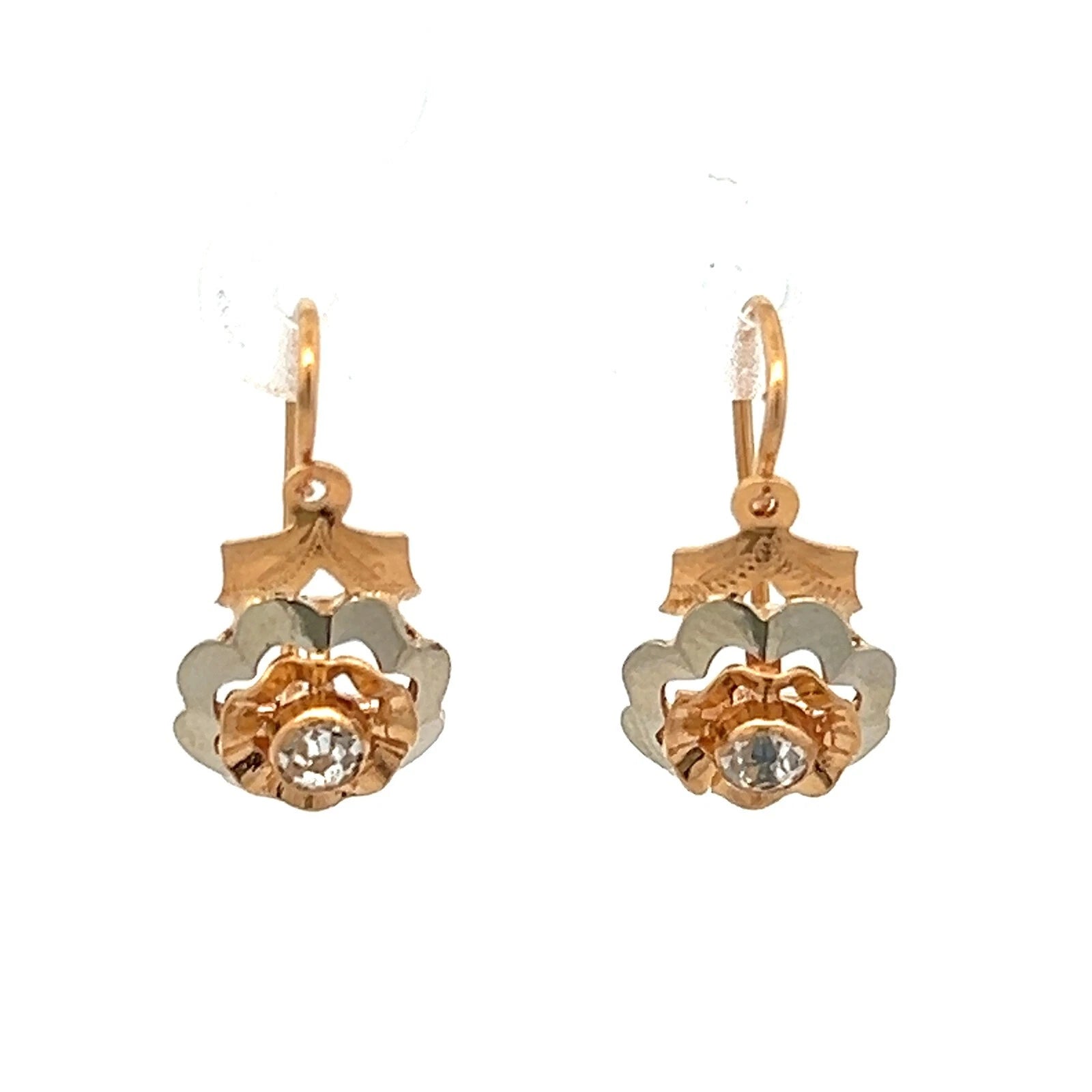 18Ct Two-Toned Gold Vintage CZ Lever Earrings