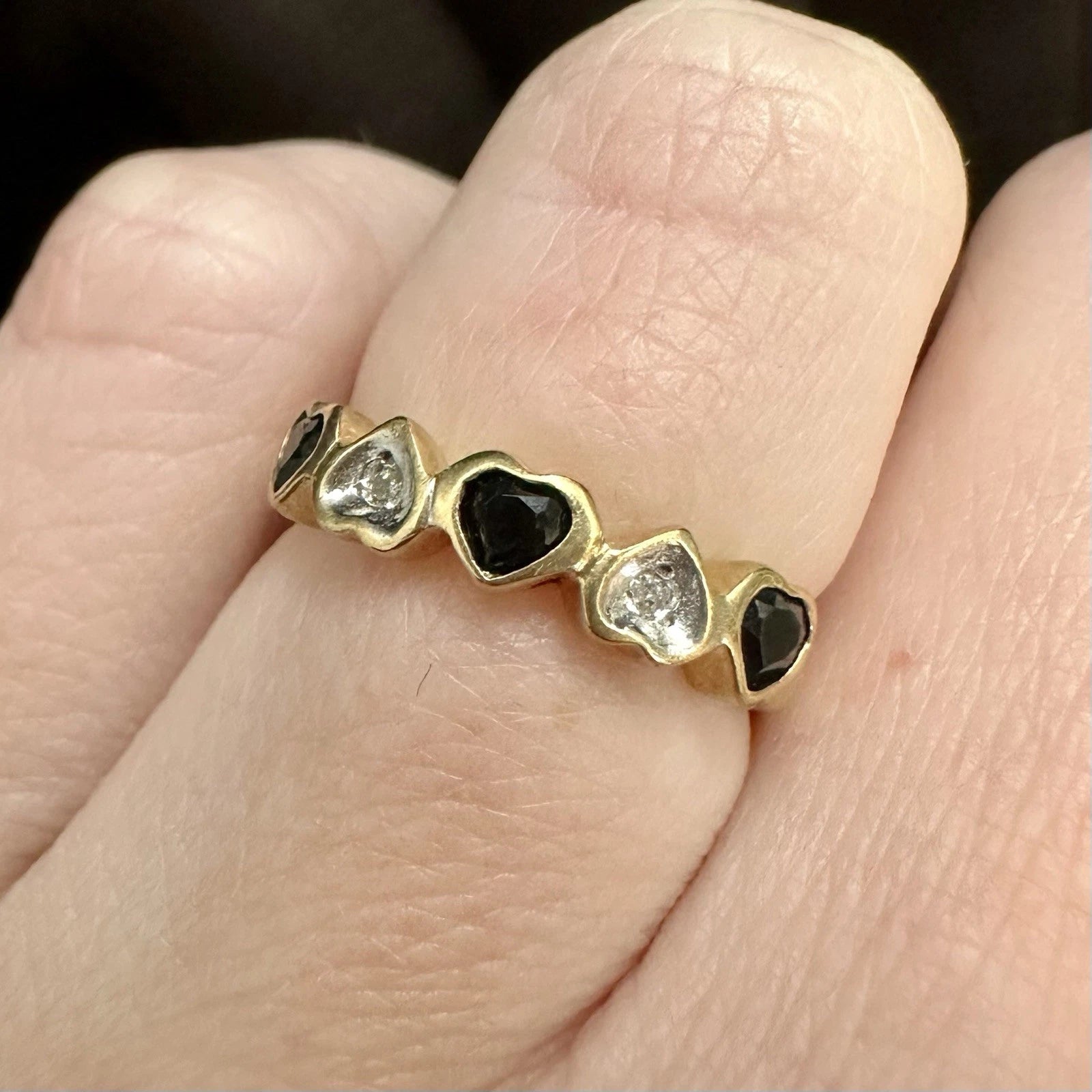 18Ct Yellow Gold Vintage Sapphire & Diamond Heart Band Ring - Sz H 1/2 US 4
