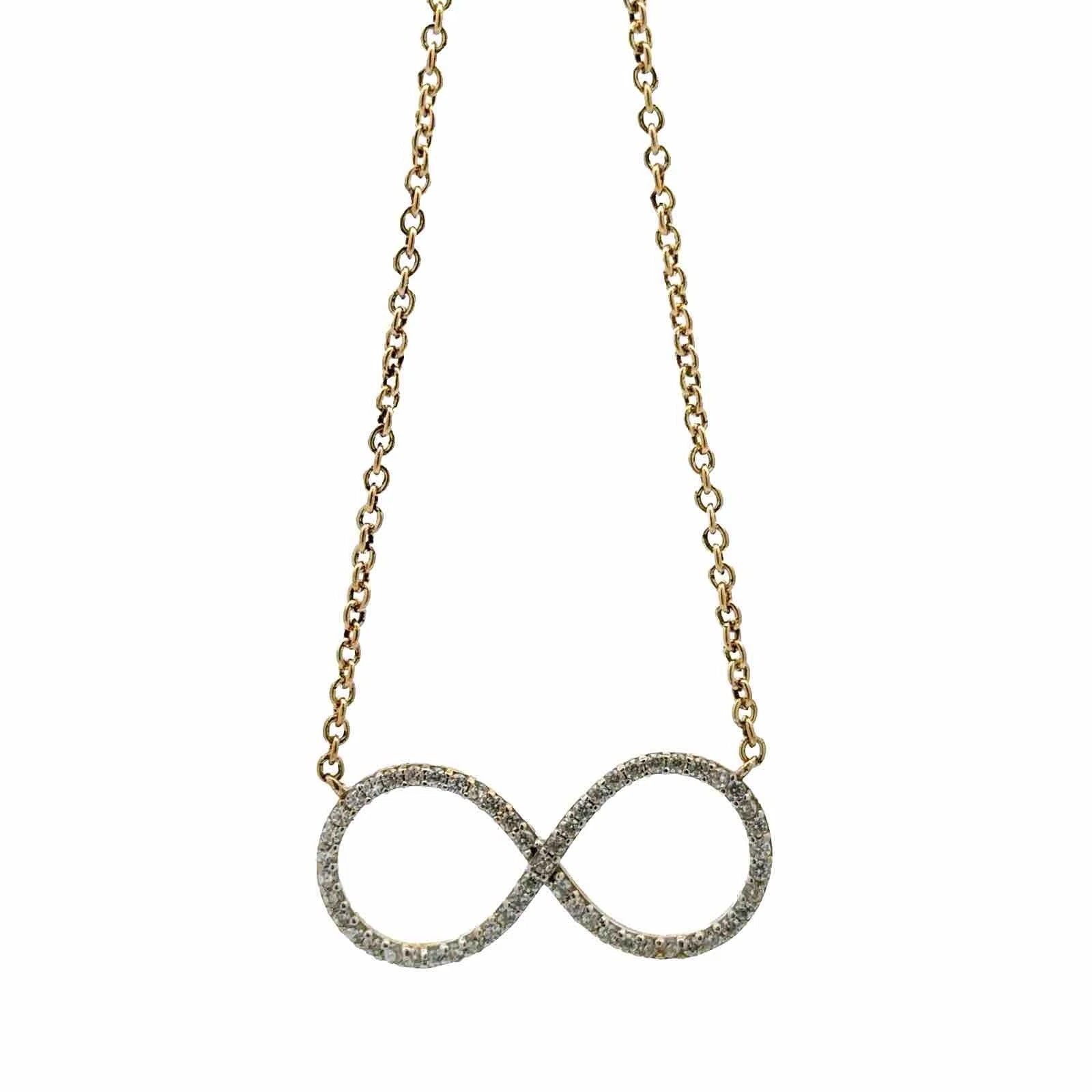 9Ct Yellow Gold Diamond Simulant Infinity 45cm Trace Chain Necklace