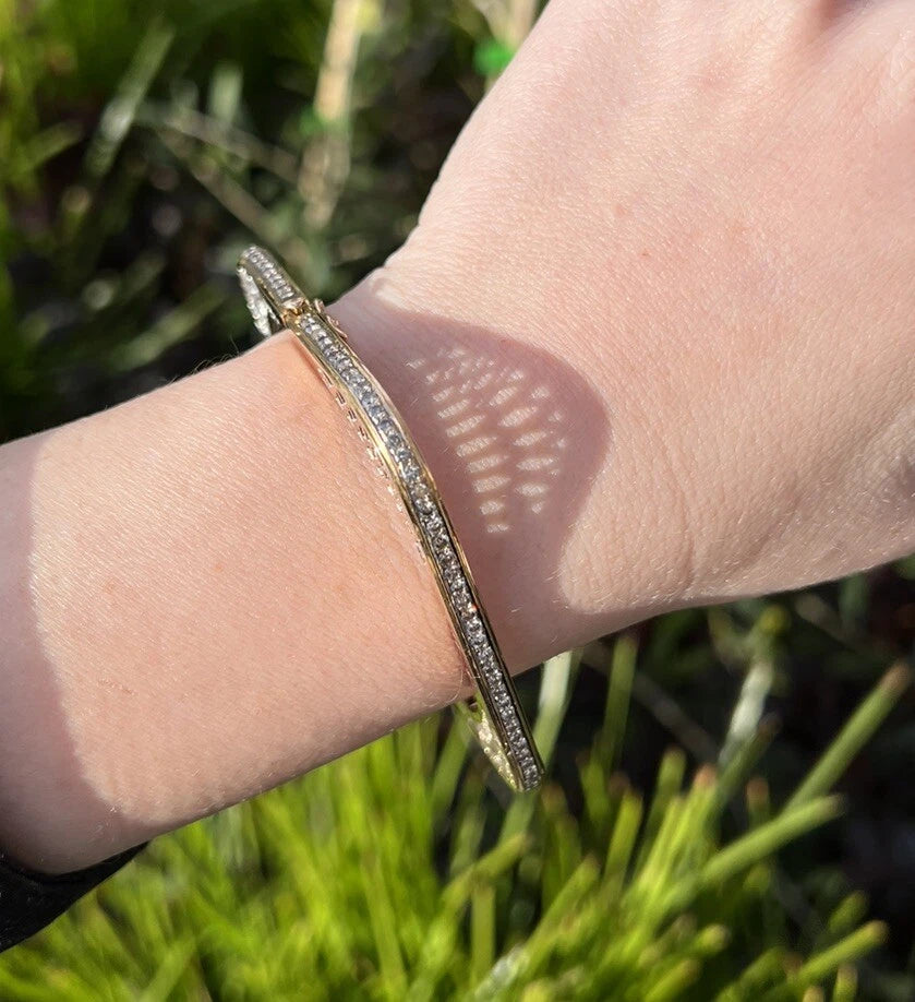 18Ct Yellow Gold 3.39 Carat TW Diamond Hinged Squared Art Deco Bangle