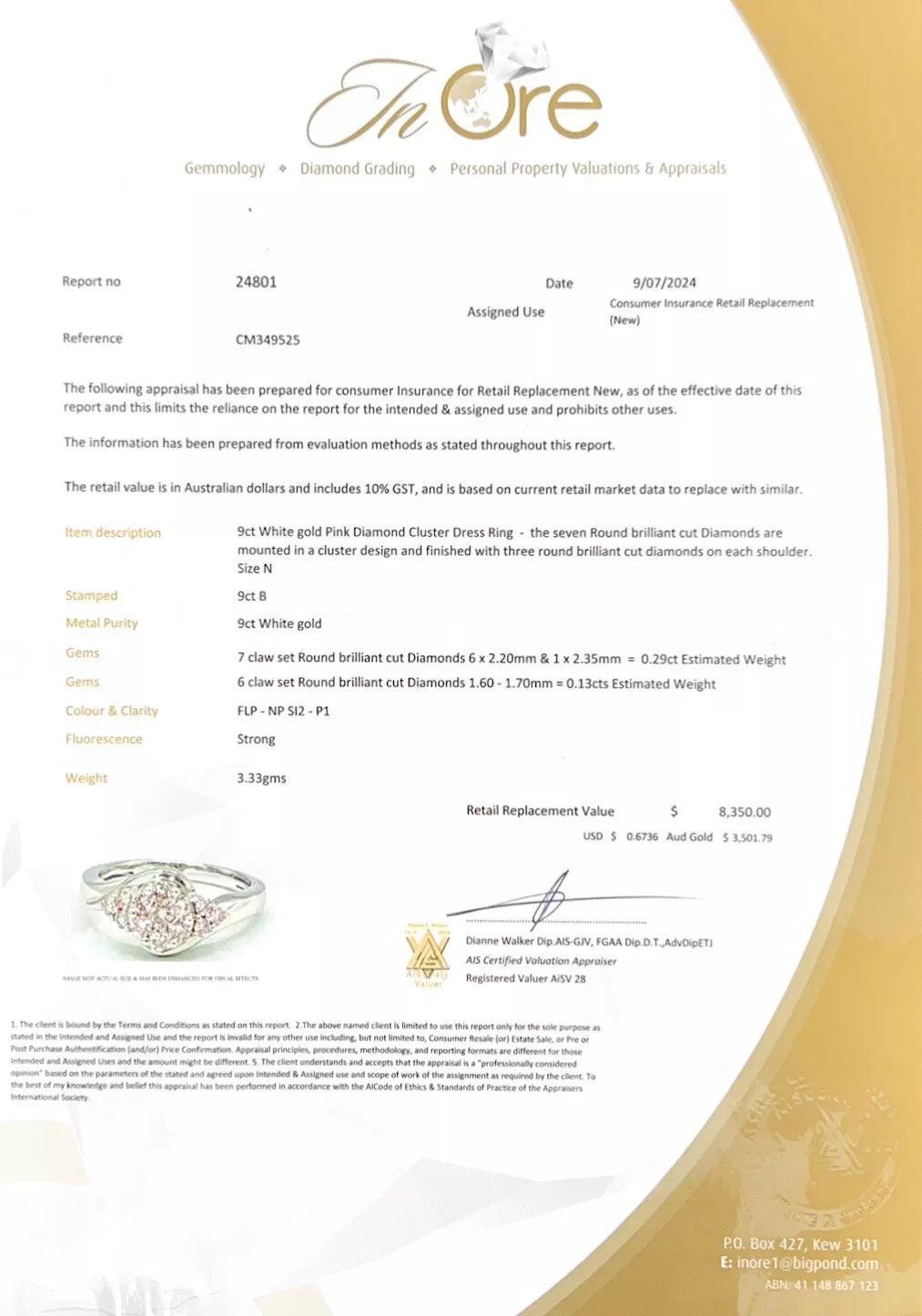 9Ct White Gold .42 Carat TW Pink Diamond Cluster Ring Sz N