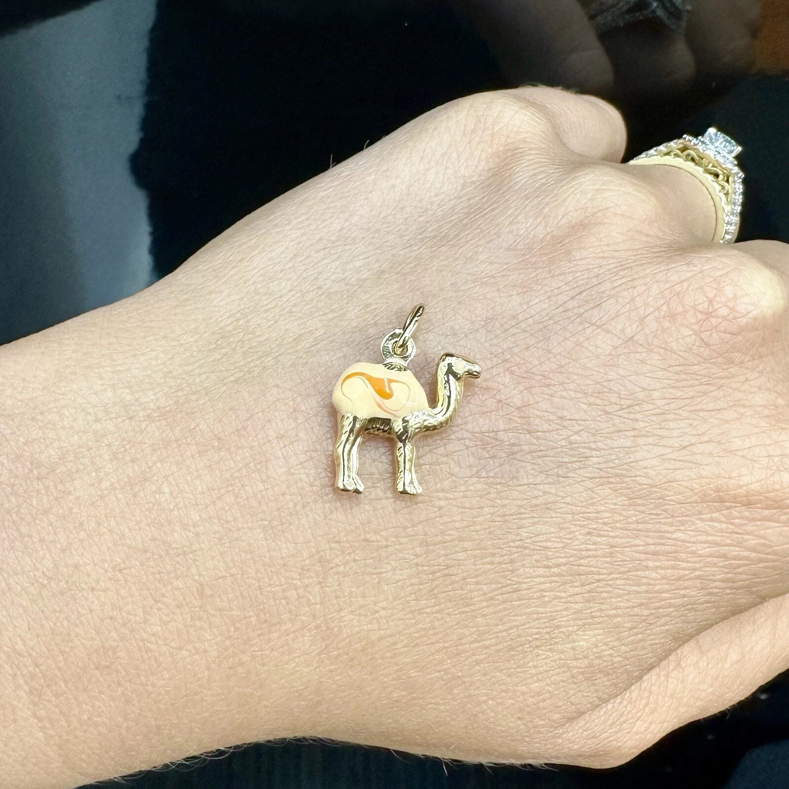18Ct Yellow Gold Peach & Orange Swirl Resin Camel Charm Pendant