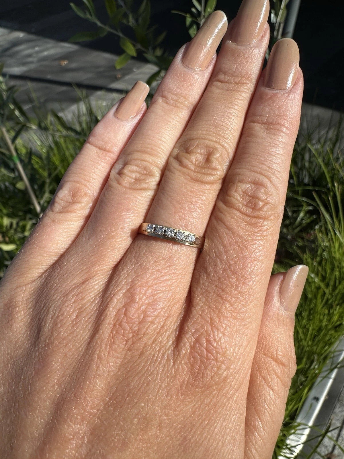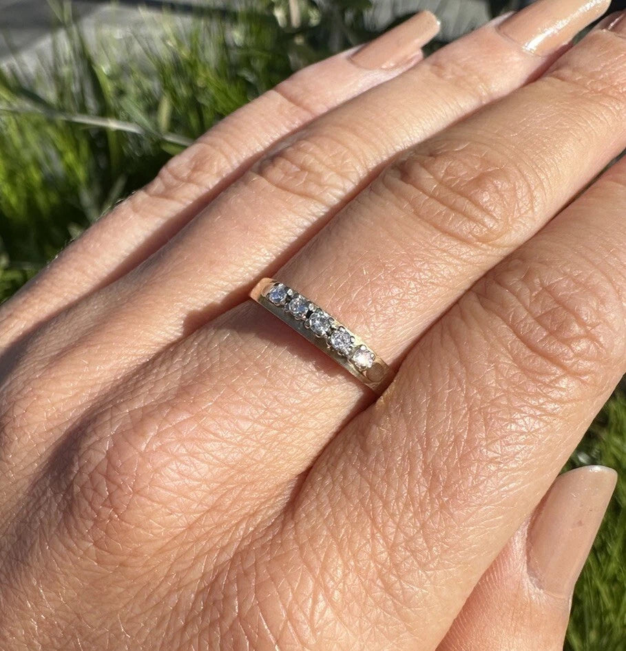 18Ct Two-Tone Gold Vintage .15 Carat TW Diamond Raised Eternity Band Ring Sz R