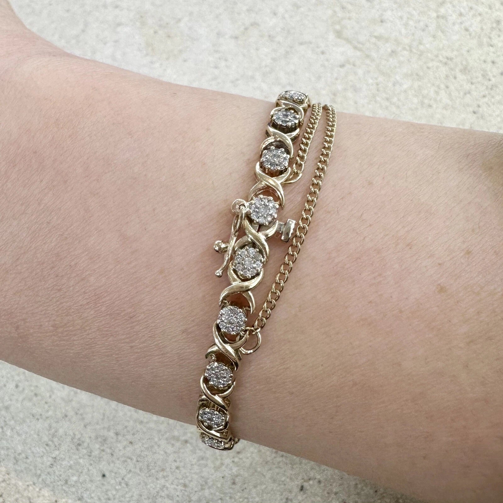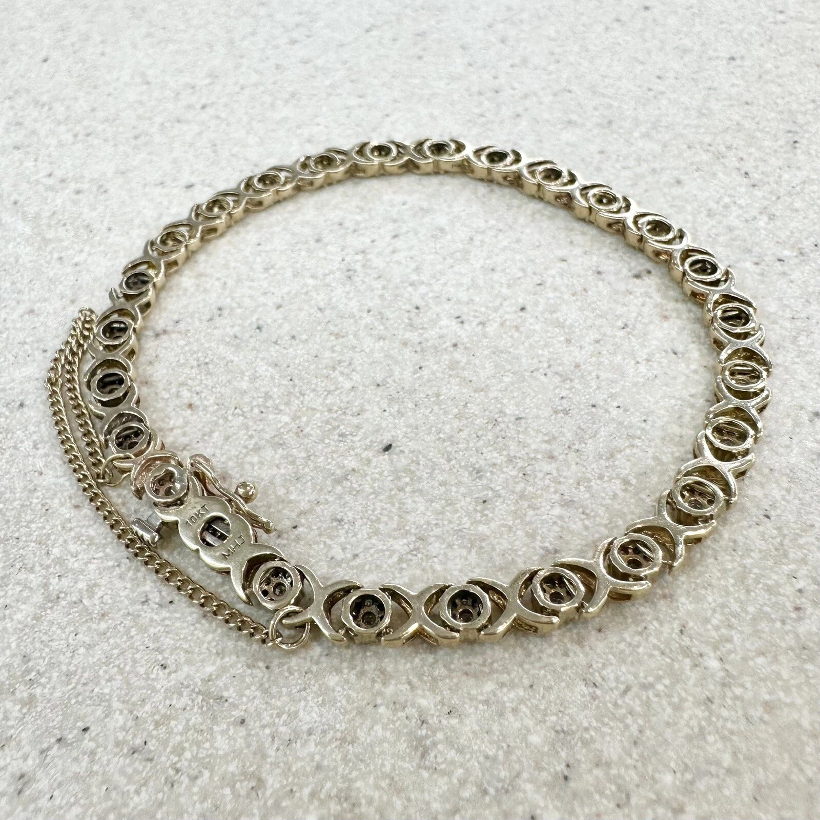 10Ct Yellow Gold .75 Carat TW Diamond 17cm X & O's Tennis Bracelet