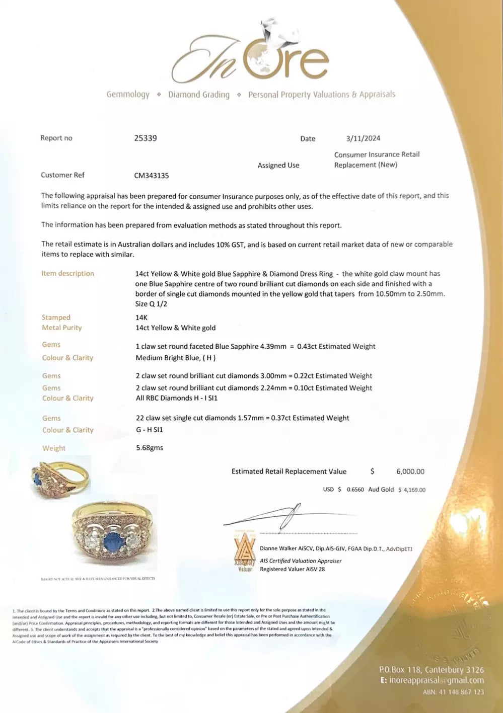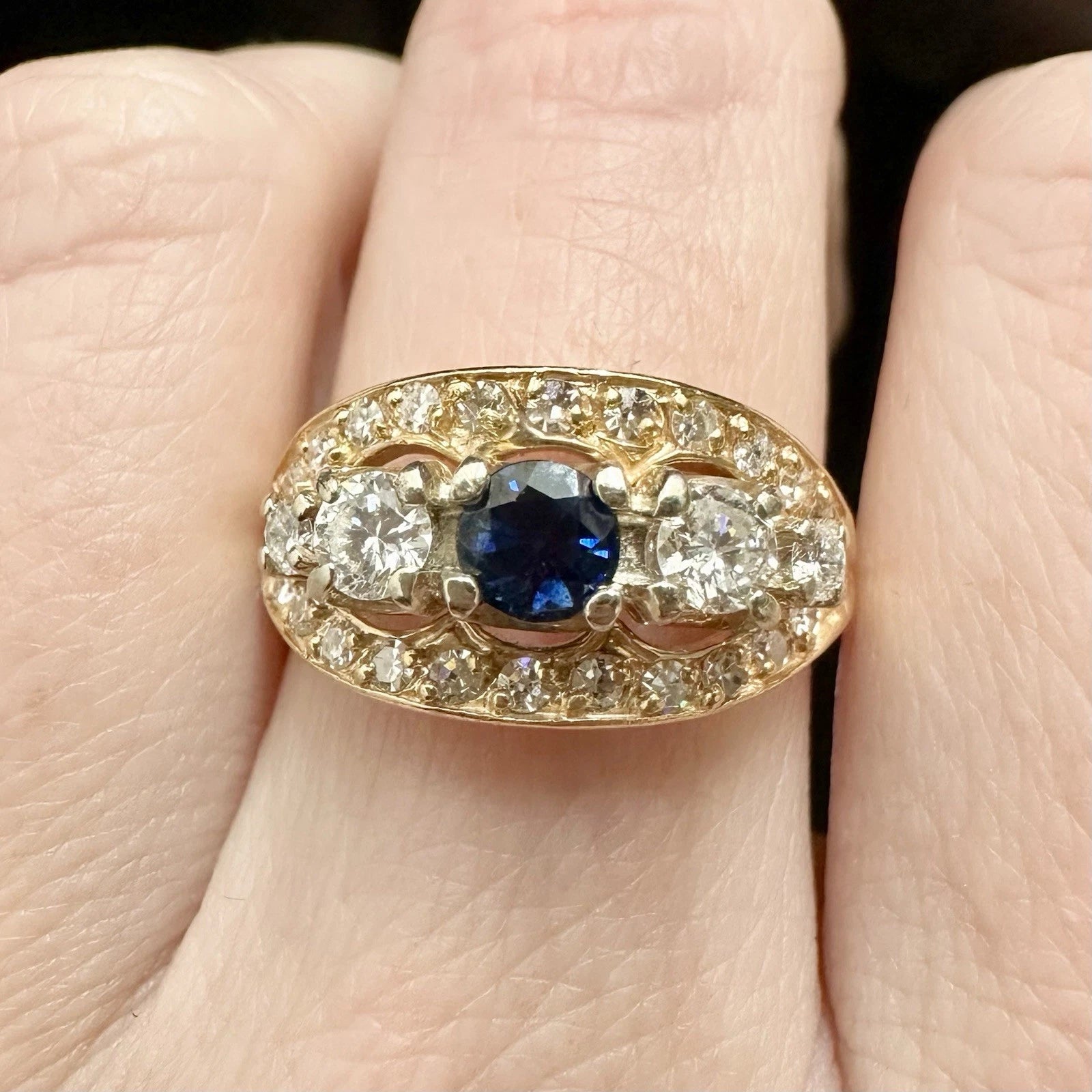 14Ct Two-Toned Gold 0.43 Carat TW Sapphire & .69 Carat TW Diamond Dress Ring