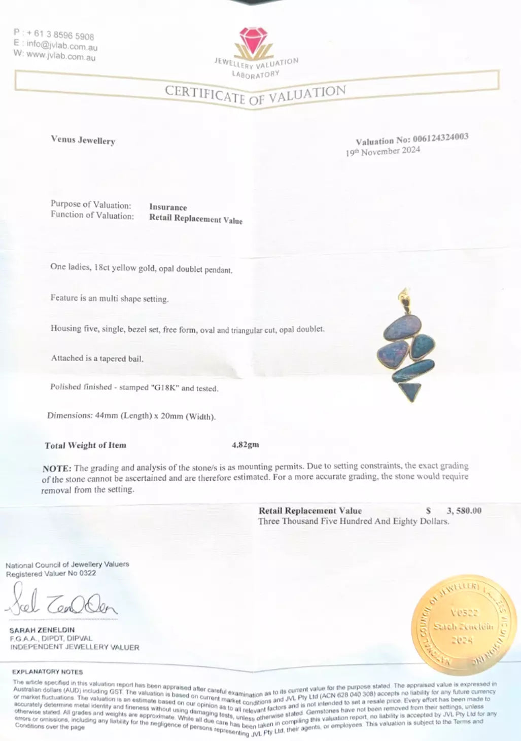 18Ct Yellow Gold Bezel Set Multi Cut Opal Doublet Pendant