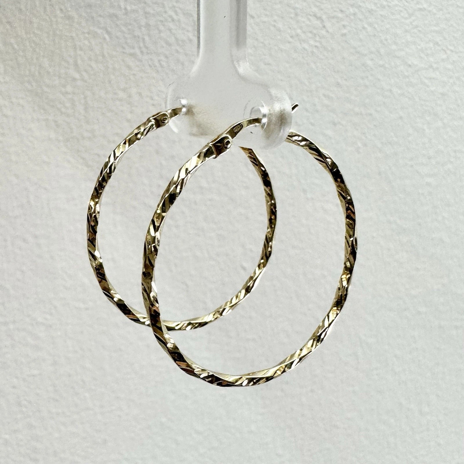 9Ct Yellow Gold 29mm Diamond Cut Twisted Hoop Earrings