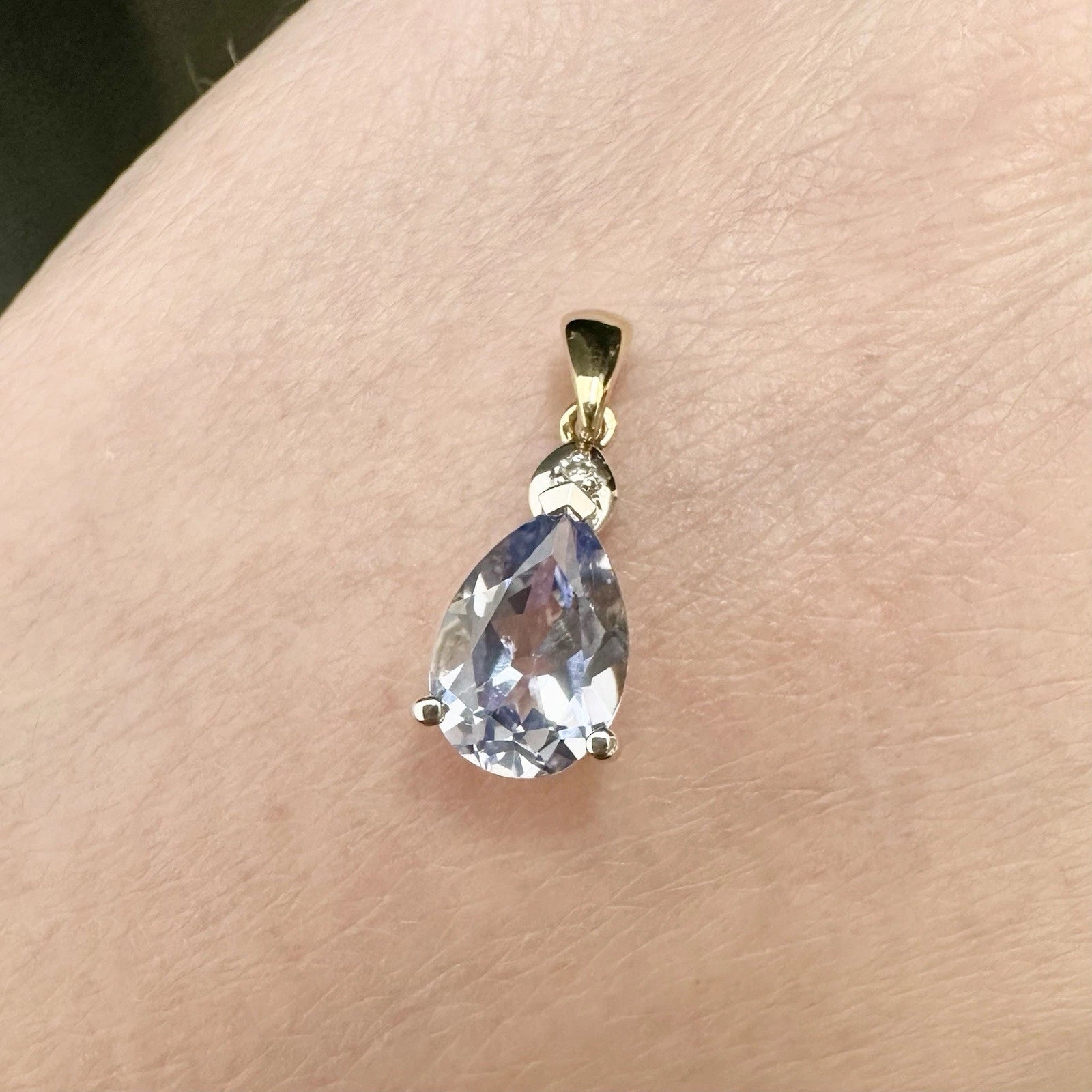 9Ct Yellow Gold Created Ceylon Sapphire & Diamond Pendant