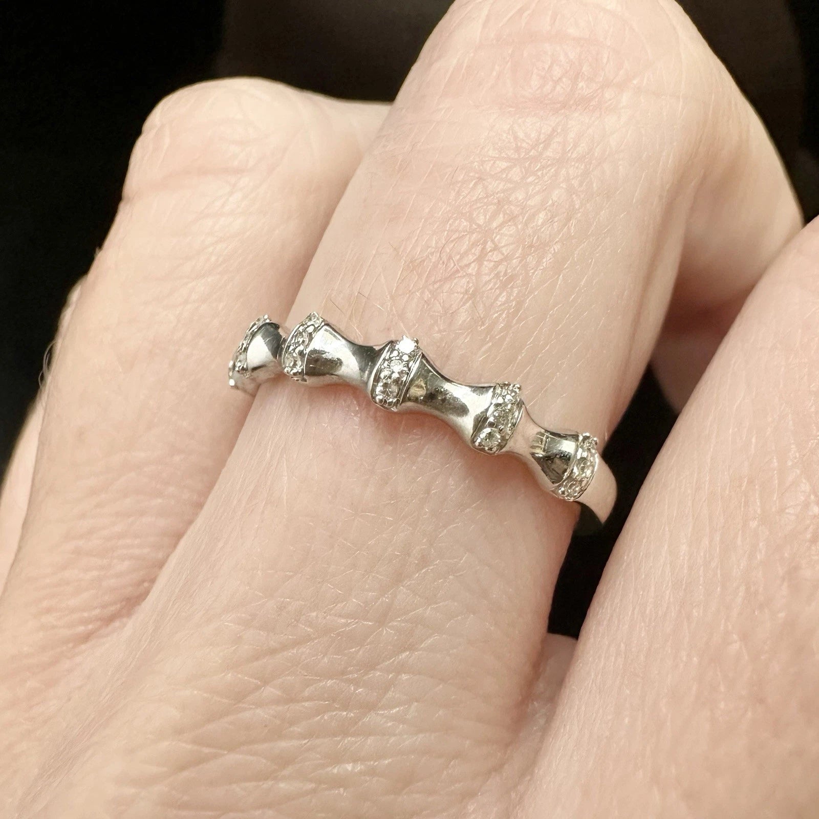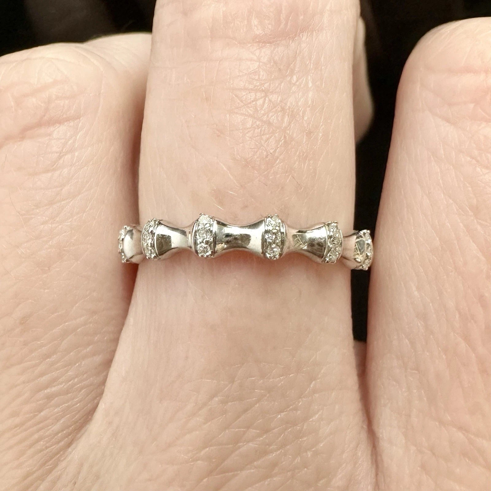 10Ct White Gold .05 TW Diamond Band Ring Sz O 1/2