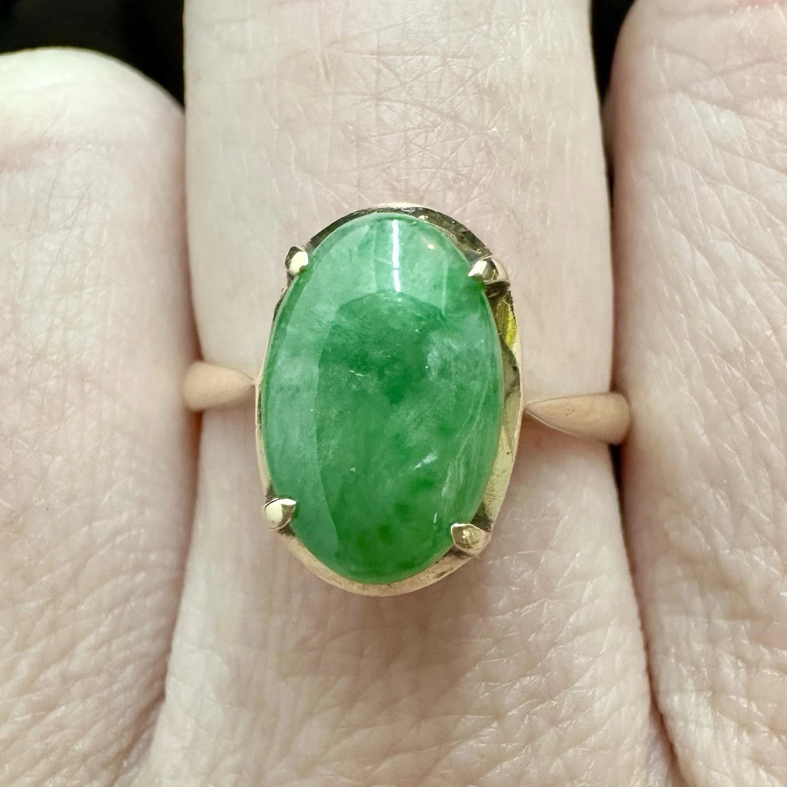 18Ct Yellow Gold Vintage Cabochon Cut Jade Ring Sz O 1/2