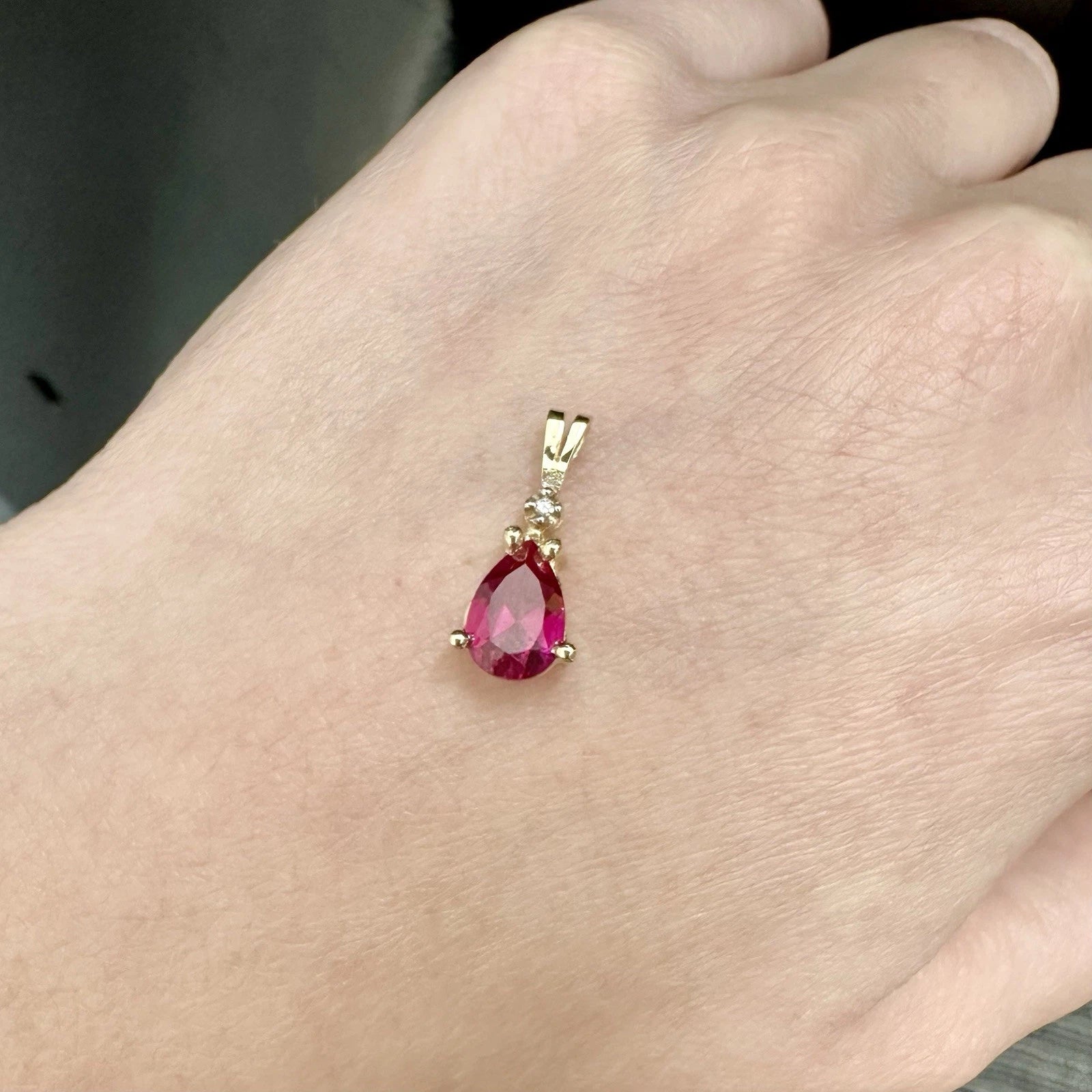10Ct Yellow Gold Created Ruby & Diamond Accent Pendant