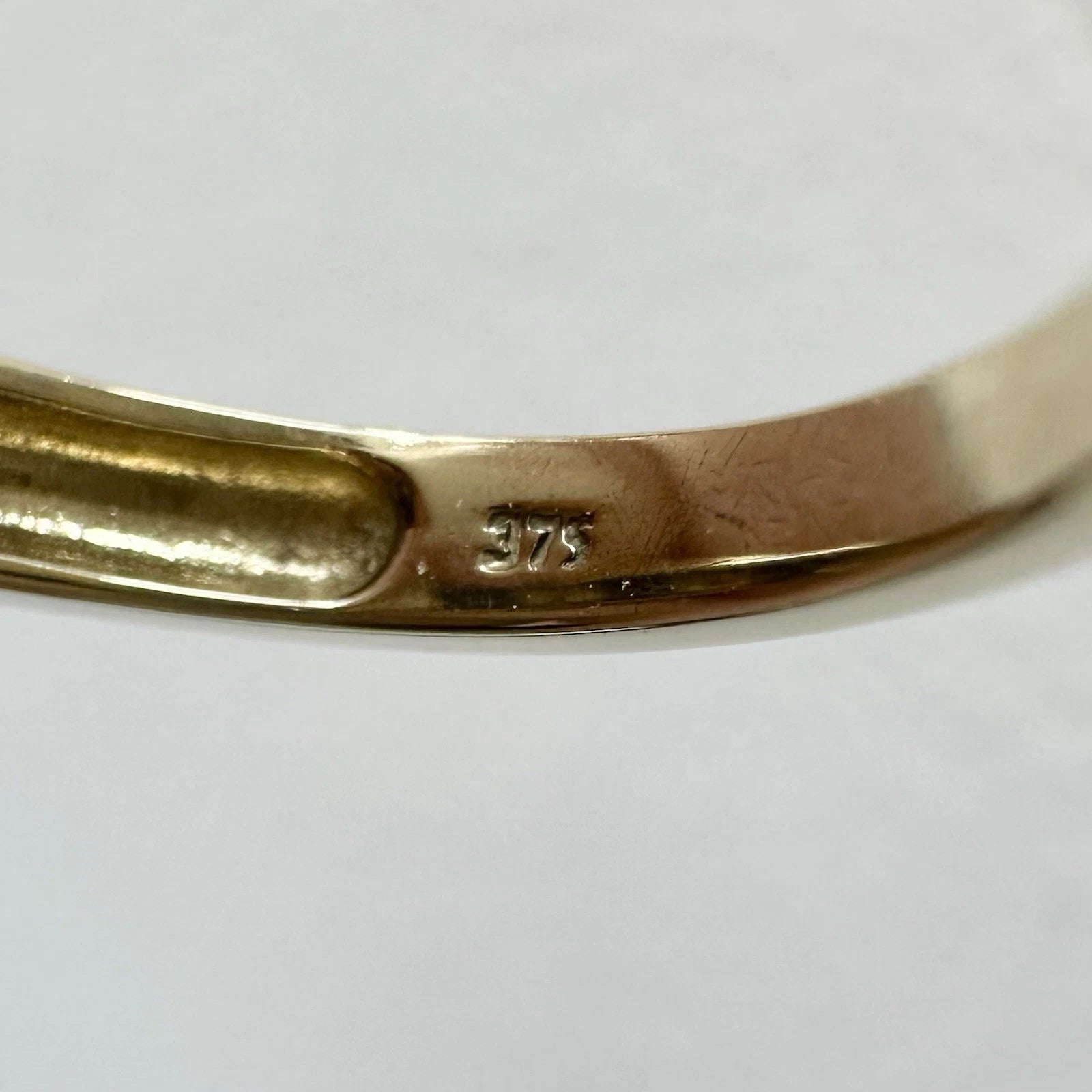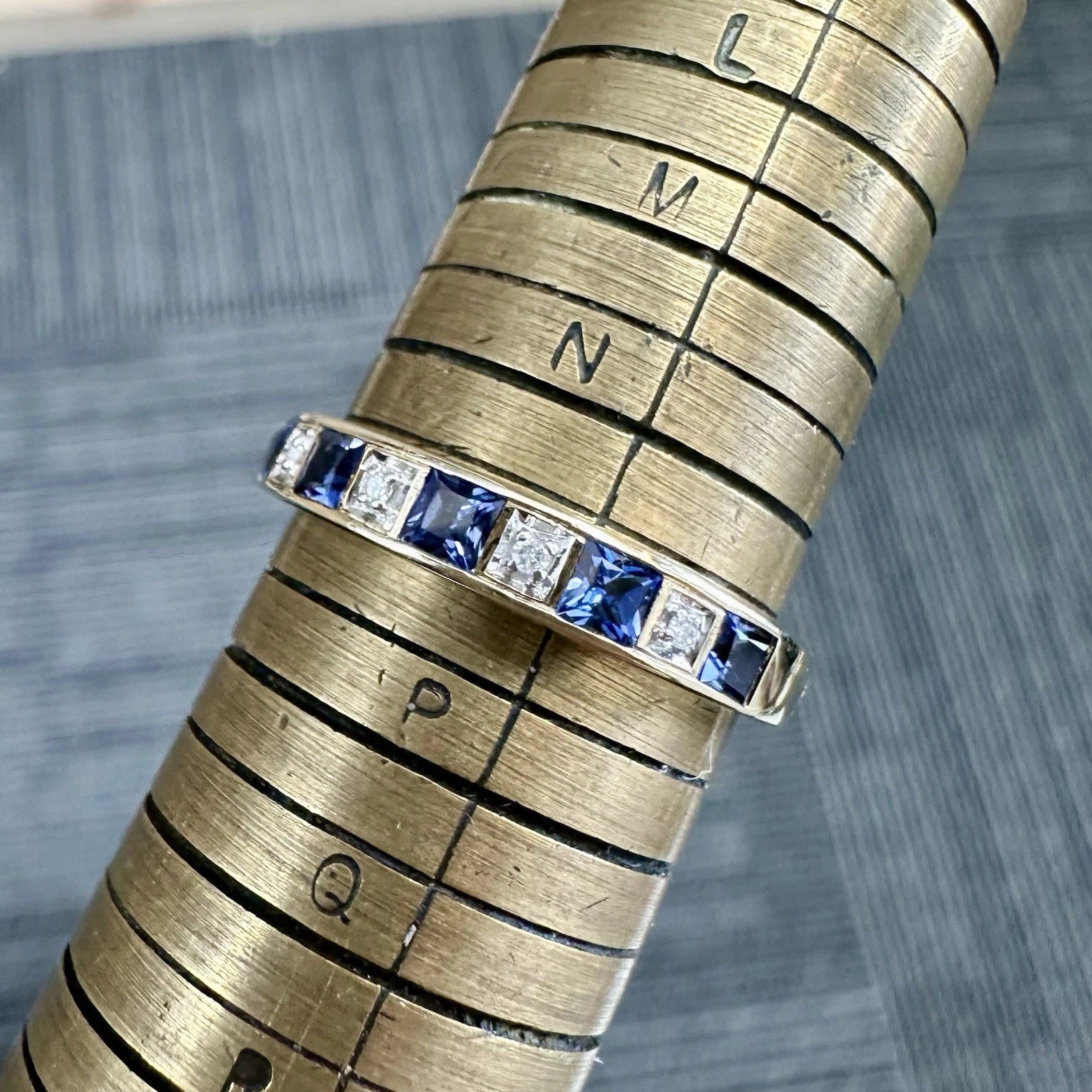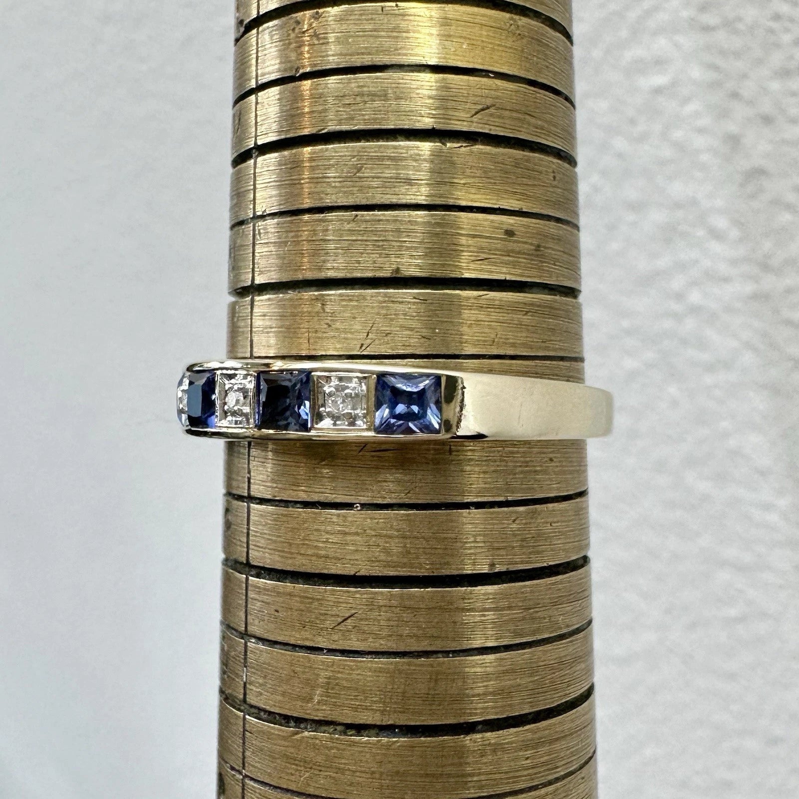 9Ct Yellow Gold Created Ceylon Sapphire & Diamond Band Ring Sz O