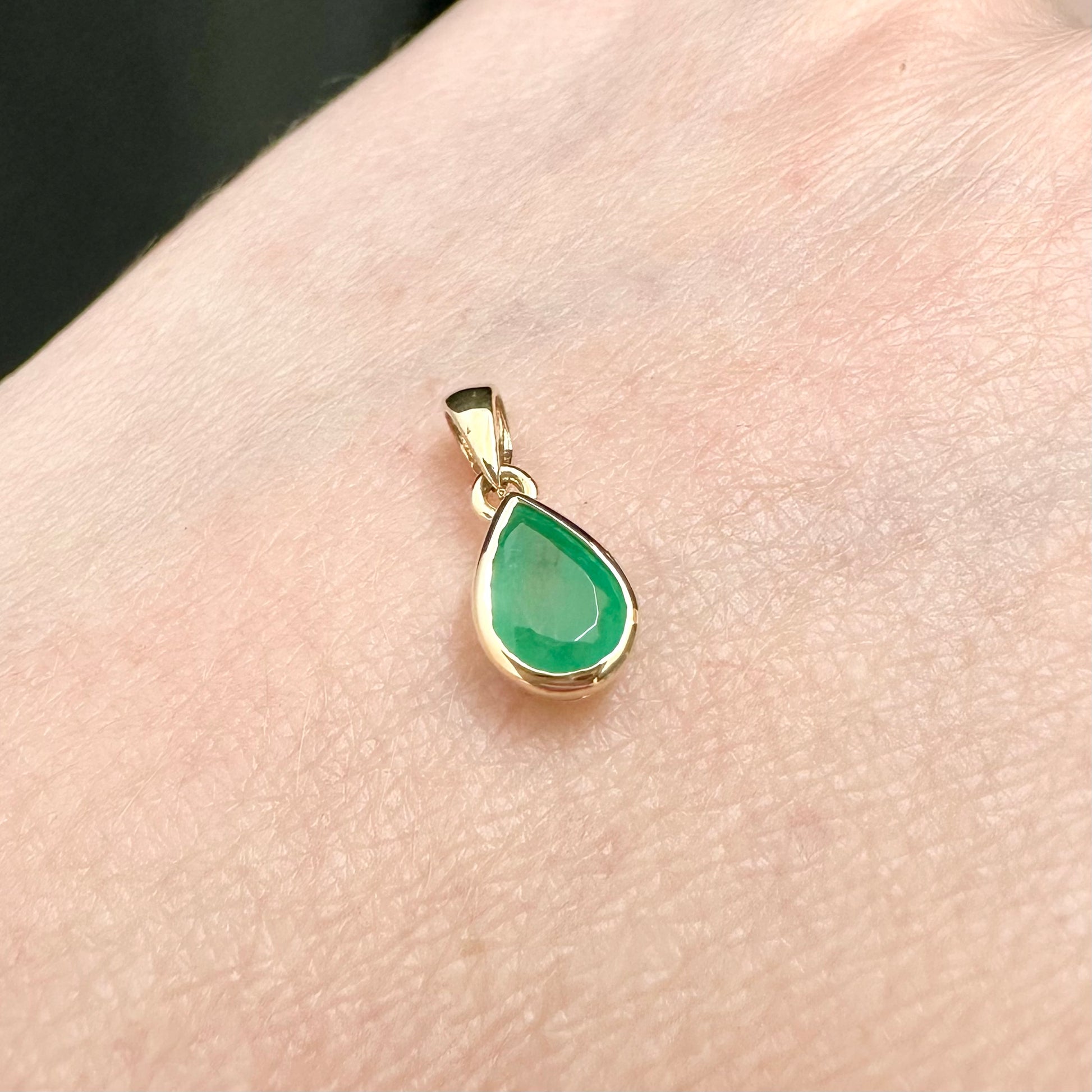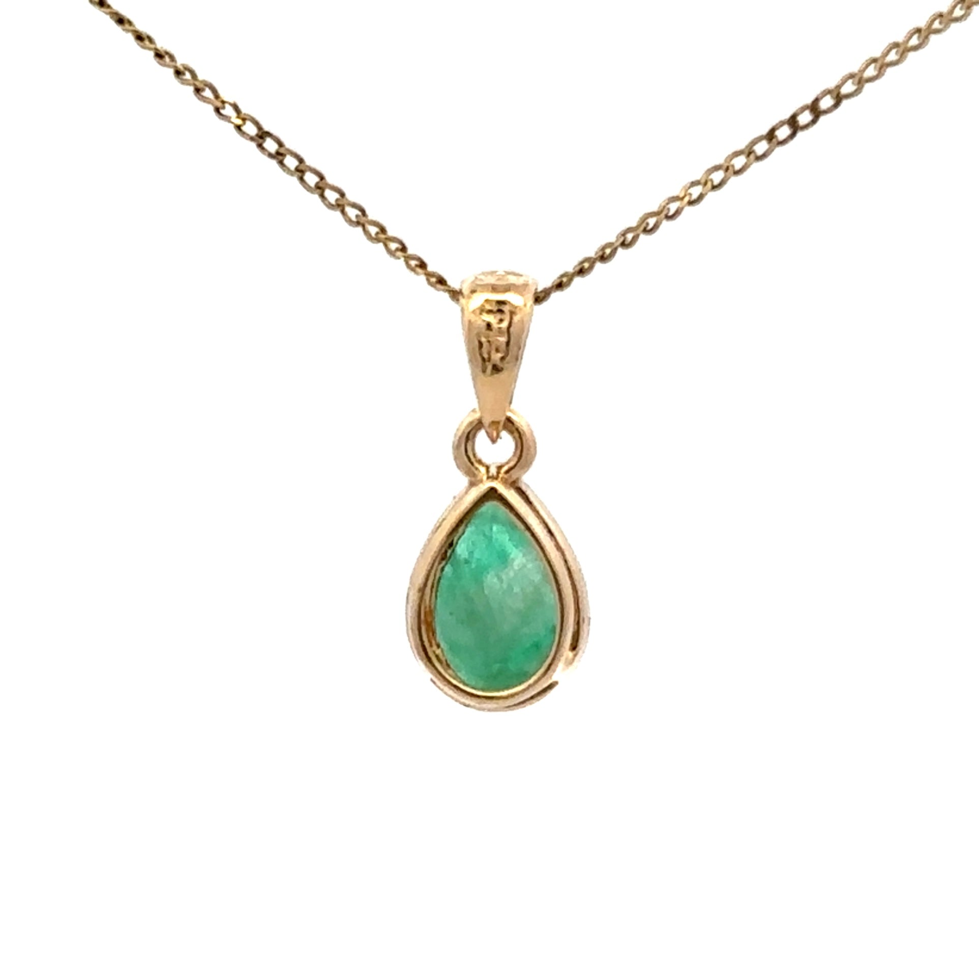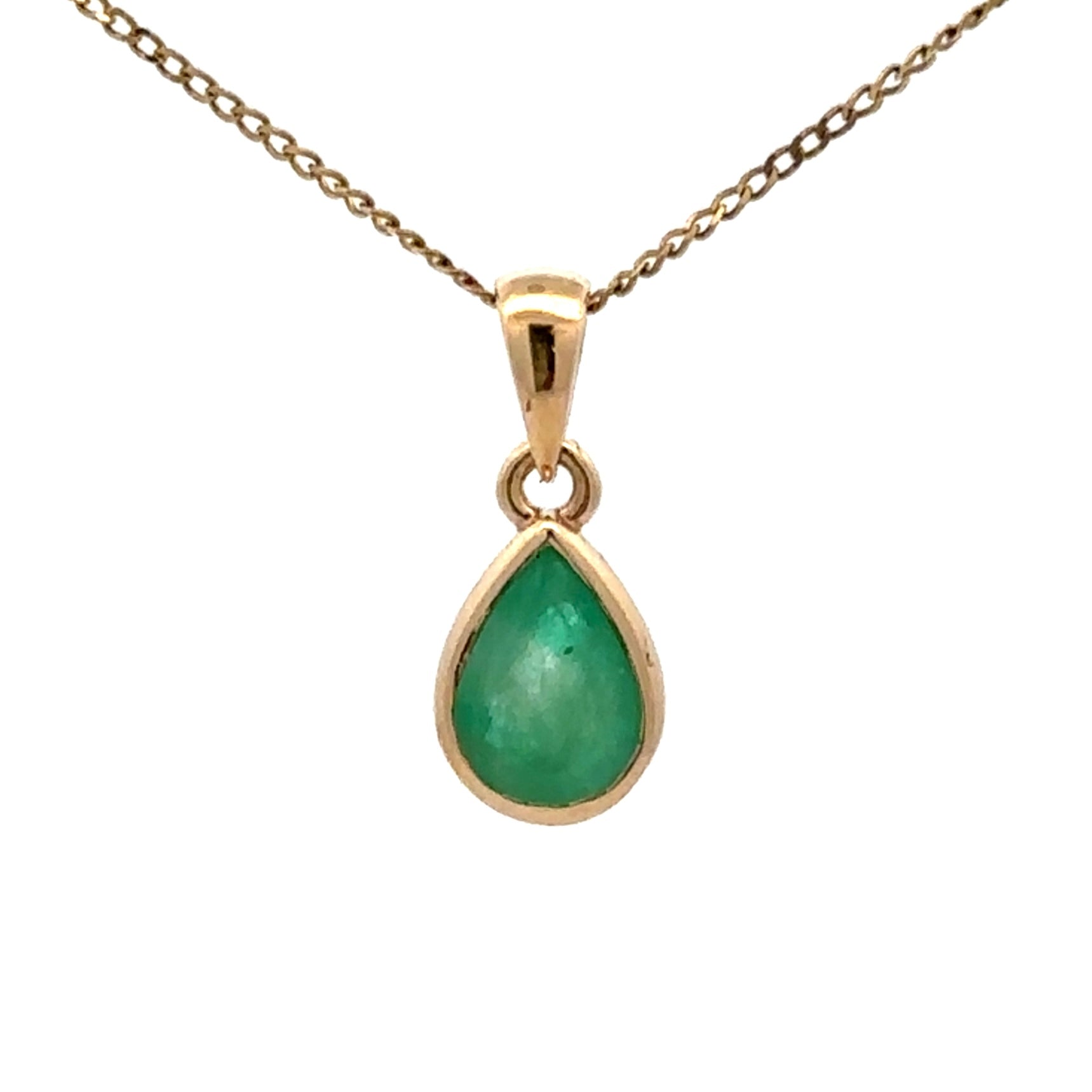 9Ct Yellow Gold Bezel Set Teardrop Emerald Pendant