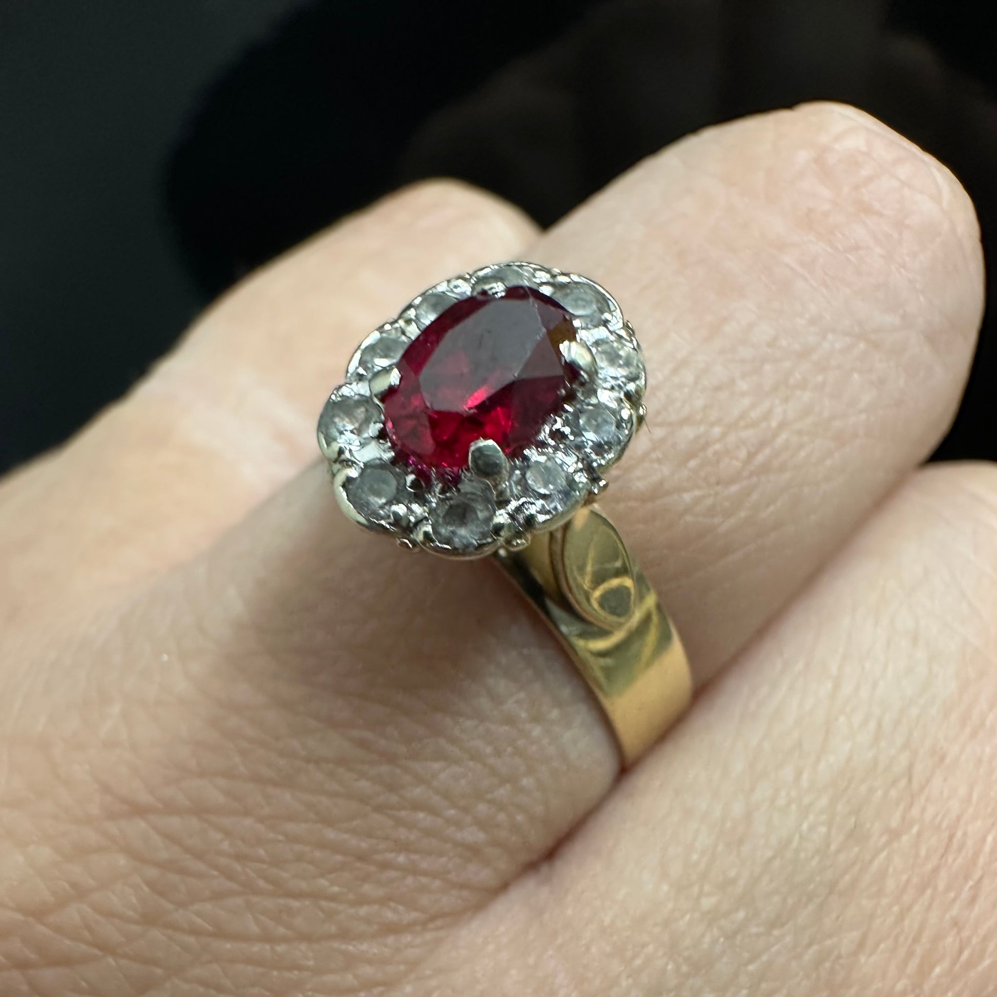 9Ct Yellow Gold Created Ruby With CZ Halo