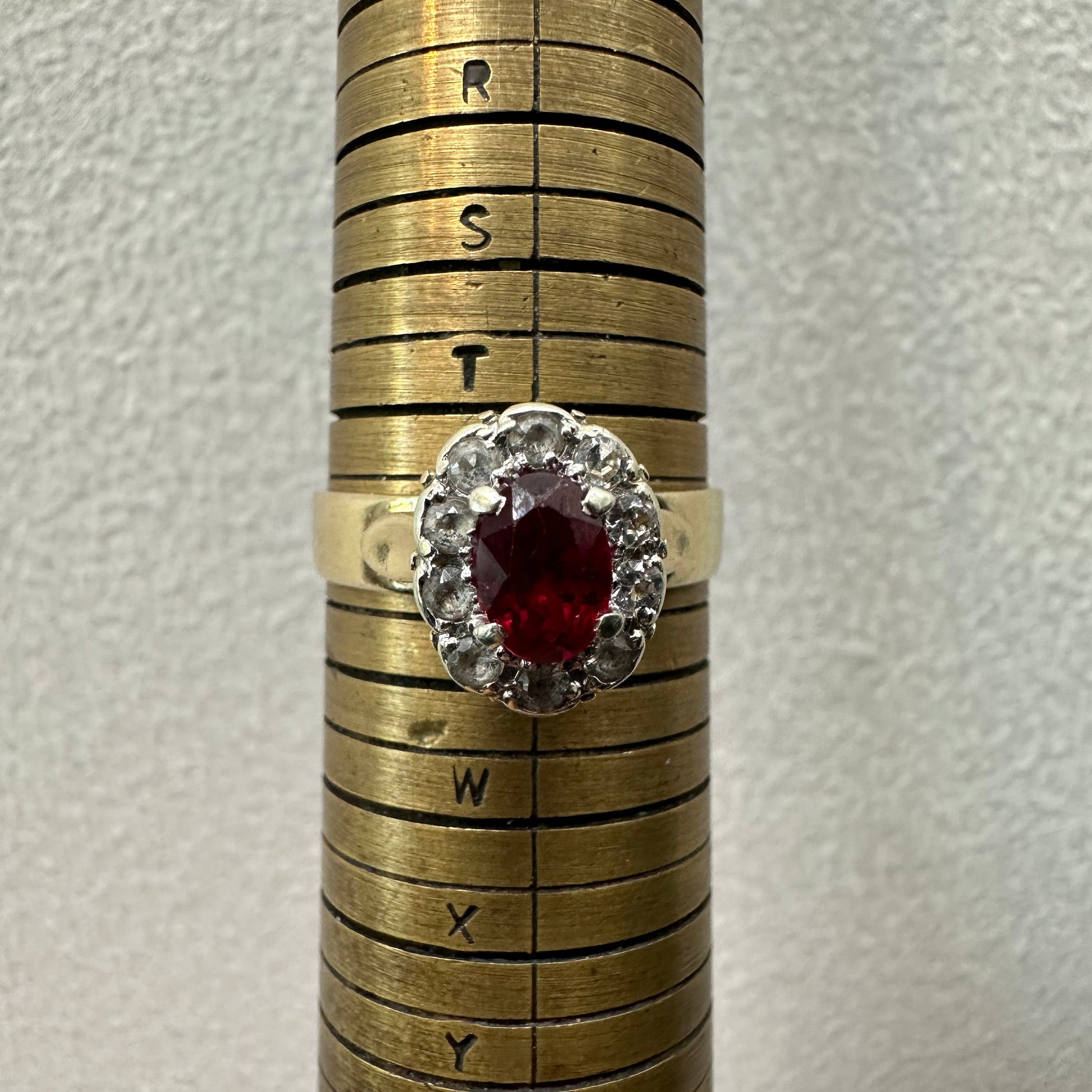 Stones: 1 X Oval Cut Created Ruby With Halo Of Brilliant Cut Cubic Zirconia's