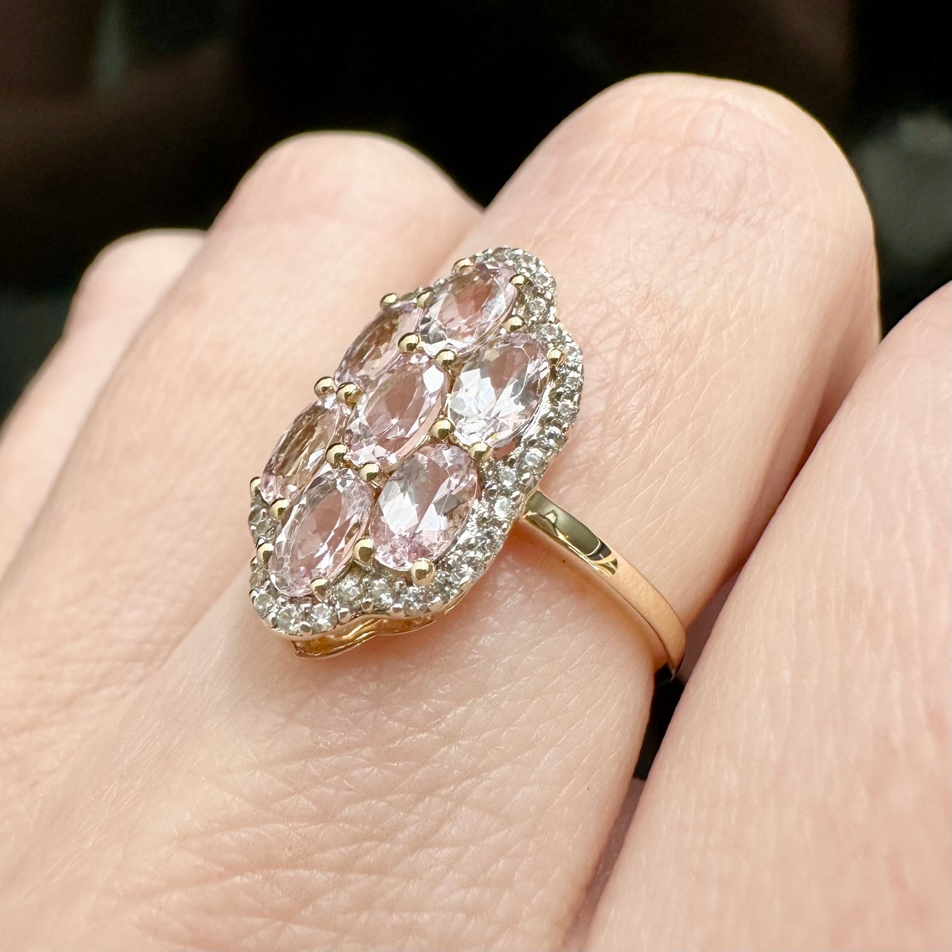 9Ct Yellow Gold Morganite & Diamond Simulant Set Ring Sz L 1/2