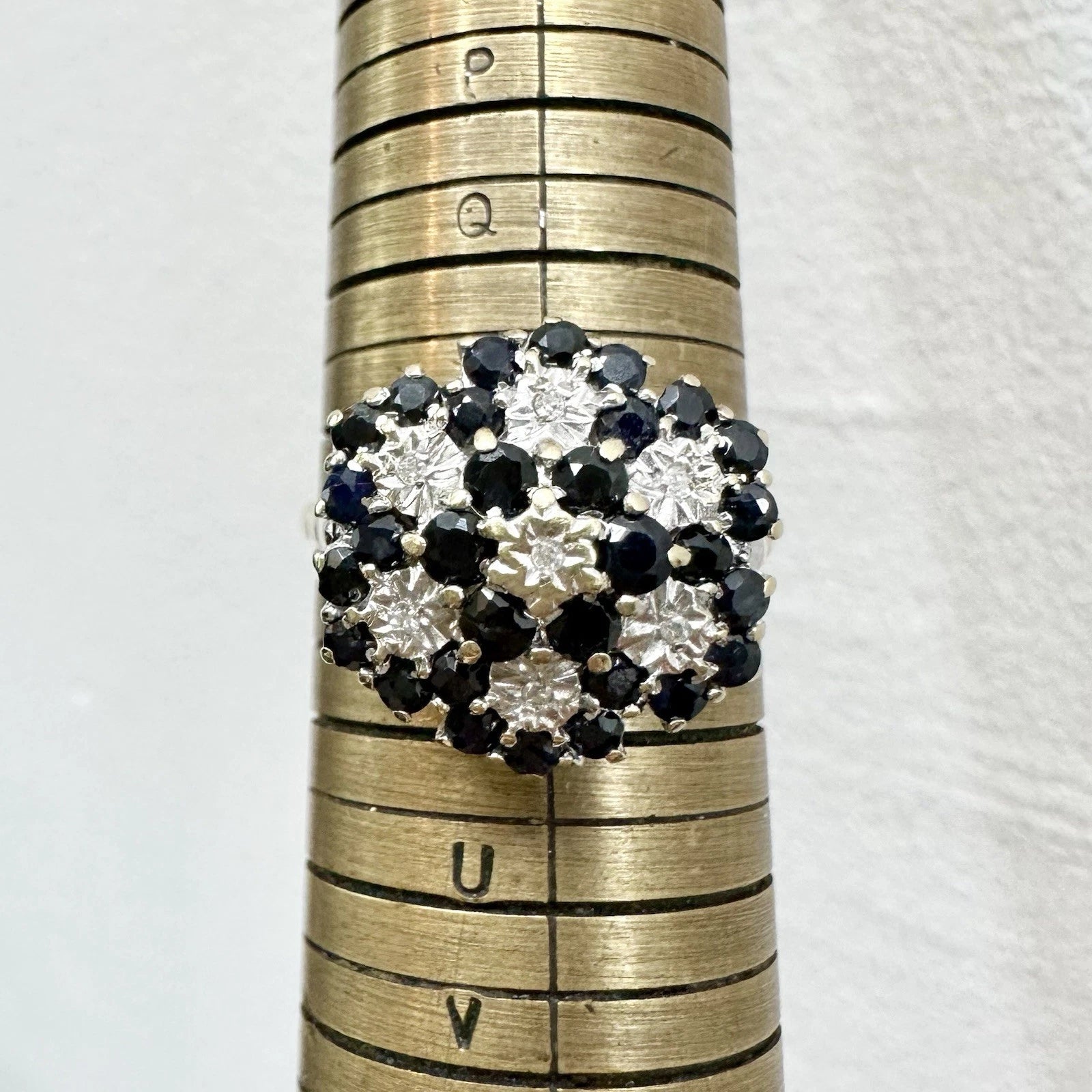 9Ct Yellow Gold Vintage Sapphire & .04Ct TW Diamond Ring Sz S
